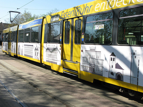 Nur wenige Kilometer weiter in Bredeney habe ich dann mein Auto stehen lassen und bin in die Kulturlinie 107 der Essener Verkehrsbetriebe umgestiegen. Diese Straßenbahnlinie verbindet (nicht jede Fahrt, Fahrplan beachten!) Essen Bredeney mit Gelsenkirchen. Auf dem Weg dahin geht es vorbei an verschiedensten kulturellen Bauwerken. Es lohnt sich also zwischendurch auszusteigen und sich umzusehen (im innerstädtischen Bereich sogar ein Muß, denn da verkehrt die Linie 107 unterirdisch 🙂 ). Wie ich gestern las, gibt es entlang der Kulturlinie demnächst sogar Führungen.
