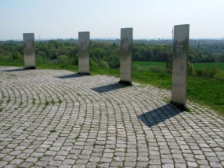 Oben angekommen gibt es einen Rundumblick über Bochum und das Ruhrgebiet. Acht Stelen aus Stahl erklären was man in einiger Entfernung sehen kann und bieten durch kleine Sehschlitze / Gucklöcher den direkten Blick auf das beschriebene Objekt. Wer übrigens ein Gipfelkreuz sucht, es ist liegend angebracht und dient als Sitz- oder Liegebank 😉 . Zum Tagesabschluß war ich am Dienstag noch auf der Zeche Hannover, einem Teil des LVL Industriemuseums.
