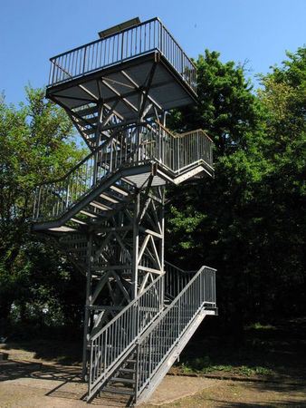 Stattdessen habe eine Halde besucht, die nicht jedem gleich auffällt, wenn er durch Oberhausen fährt. Die Knappenhalde an der gleichnamigen Knappenstraße. Eigentlich nur ein kleiner Hügel, aber mit 101,35 Metern heute die höchste Erhebung in Oberhausen. Ein schöner Spaziergang mal steiler mal weniger steil durch dichtes Grün. In knapp einer 1/4 Stunde ist man am höchsten Punkt angekommen. Ein 15 Meter hoher Aussichtsturm belohnt den Besucher mit einer schönen Aussicht.