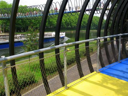 Metallspirale, Treppenspirale, Regenbogenspirale, das Spielzeug hat viele Namen aber unter einem kennt man sie jetzt auch in Oberhausen, „Slinky“. So heißt nämlich die neue Brücke über denRhein-Herne-Kanal, die seit dem Wochenende geöffnet ist – „Slinky Springs to Fame“. So wie die kleine Spielzeugspirale windet sich auch die große Schwester, erdacht von Tobias Rehberger, über den Rhein-Herne-Kanal. Bereits im Kulturhauptstadtjahr 2010 sollte die Brücke Teil des Projektes Emscherkunst werden, aber gut Ding will eben Weile haben.