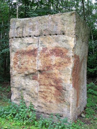 Nebenbei habe ich, auf den Beginn der Führung wartend, endlich mal den Skulpturenwald gegenüber von Parkplatz A1 gesucht und gefunden. Dort stehen z.T. auf freier Fläche, zum Teil im Wald die Granitskulpturen von Ulrich Rückriem. Ganz ehrlich, Kunst ist ja immer Geschmackssache, aber insbesondere die Skulptur „Castell“ (hier auf dem Wikipedia Bild zu sehen) gleicht im Inneren einer Müllsammelstelle, bei der man vergessen hat die Tonnen wieder hinzustellen 😦 .