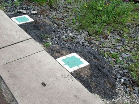 Jetzt eine kleine Quizaufgabe, bei der ich die Antwort noch nicht kenne. Auf dem Gelände der Zeche Zollverein (und wie der Führer sagte auch an anderen Stellen in Essen) fielen mir kleine grüne Quadrate mit vier weißen Ecken auf, meist 2 – 3 nebeneinander. Weiß jemand von euch, wofür diese Quadrate zuständig sind?