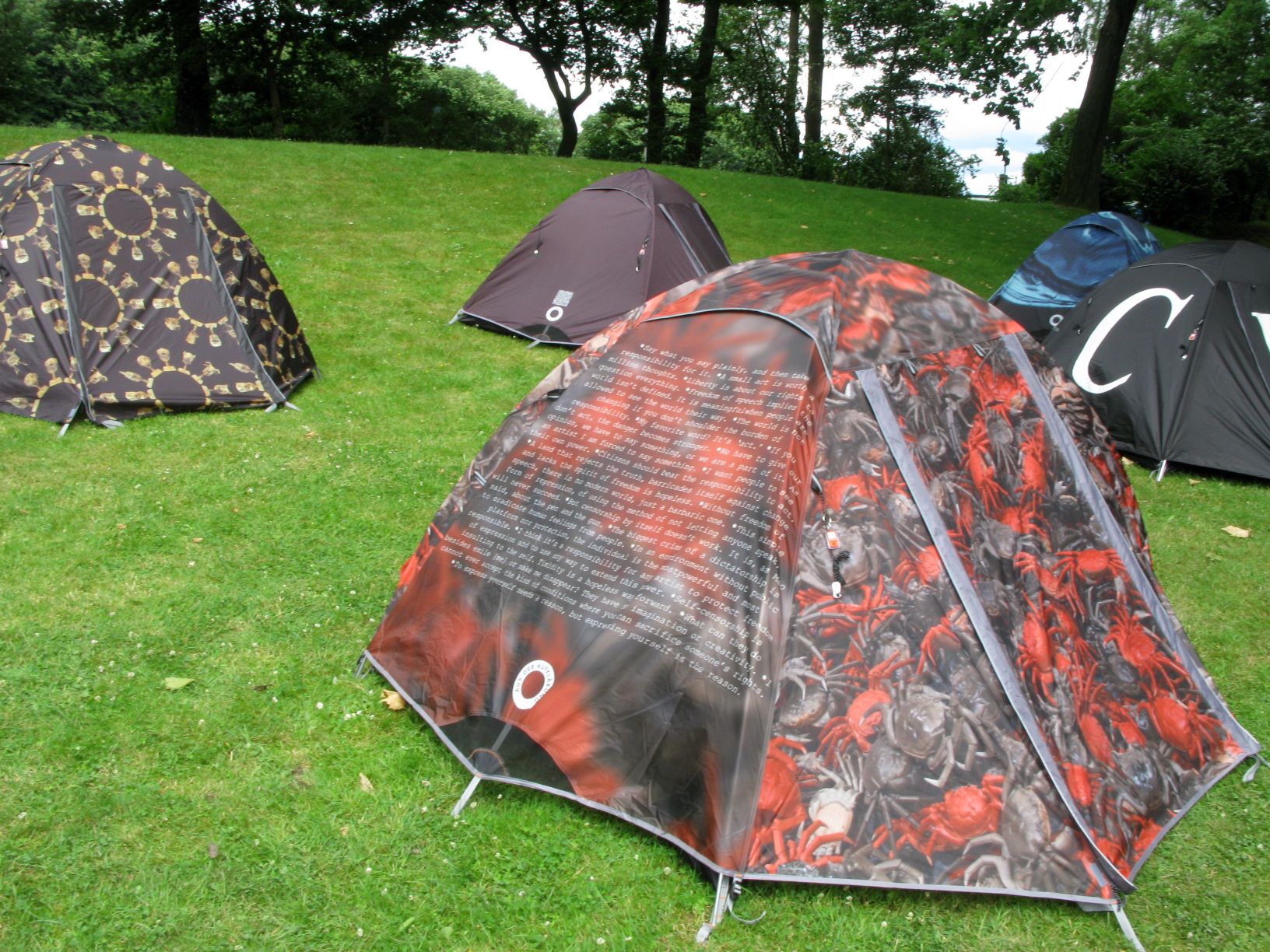 Übrigens, an oder in einigen Kunstwerken („Warten auf den Fluß“, „Fluß wird Wolke“ und in 1000 Zelten des Künstlers Ai Weiwei) kann man sogar übernachten und wird somit Teil des Kunstwerks. Die Übernachtung in „Warten auf den Fluß“ (Oberhausen, Flugstraße, Nähe Am Bruchsteg + 10 Min. Fußweg) kostet beispielsweise 90,- Euro bei voller Verpflegung und Stellung von Bettzeug und Handtüchern. Vielleicht wäre diese Brücke tagsüber ein möglicher BloggerTreffpunkt. Die Homepage der Emscherkunst verkündet z.B. am kommenden Sonntag (30.06.2013), an besagtem Kunstwerk „Warten auf den Fluß“ zw. 15.00 und 18.00 Uhr eine „Beatbürger Jamsession“. Wenn ich’s schaffe schaue ich bestimmt mal rein.