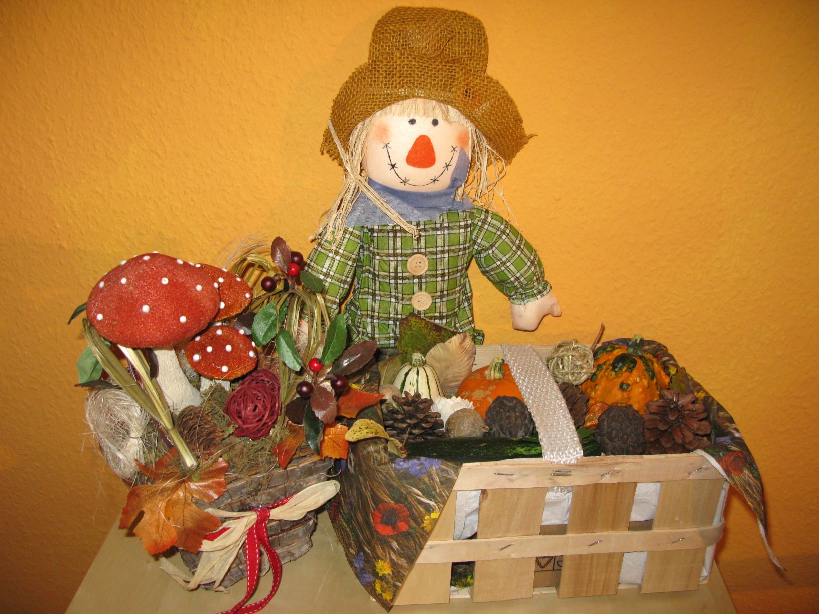 Warum erzähle ich das jetzt hier? Weil ich mir angeregt dadurch, am Sonntag überlegt habe, ob ich nicht im meinem Wohnzimmer auch etwas Herbstdekoration platzieren soll. Dazu müßt ihr wissen, daß ich nicht so der Dekokönig bin, ich habe zu Weihnachten nicht mal einen Weihnachtsbaum, aber so ein bis zwei Herbstkürbisse, ein paar Blätter, getrocknete Schalen und das alles in einem Körbchen platziert, das ich noch von einem Apfelkauf im Supermarkt übrig hatte, ja das gefiel mir. Der Kerl da oben auf dem Bild ist übrigens Harry Herbst :-). Während ich also im Discounter und im Supermarkt um die Ecke die Deko zusammensuche (wie es der Zufall will, gibt’s das beim Discounter ja gerade jetzt) gärt in meinem Kopf so ein Gedanke.