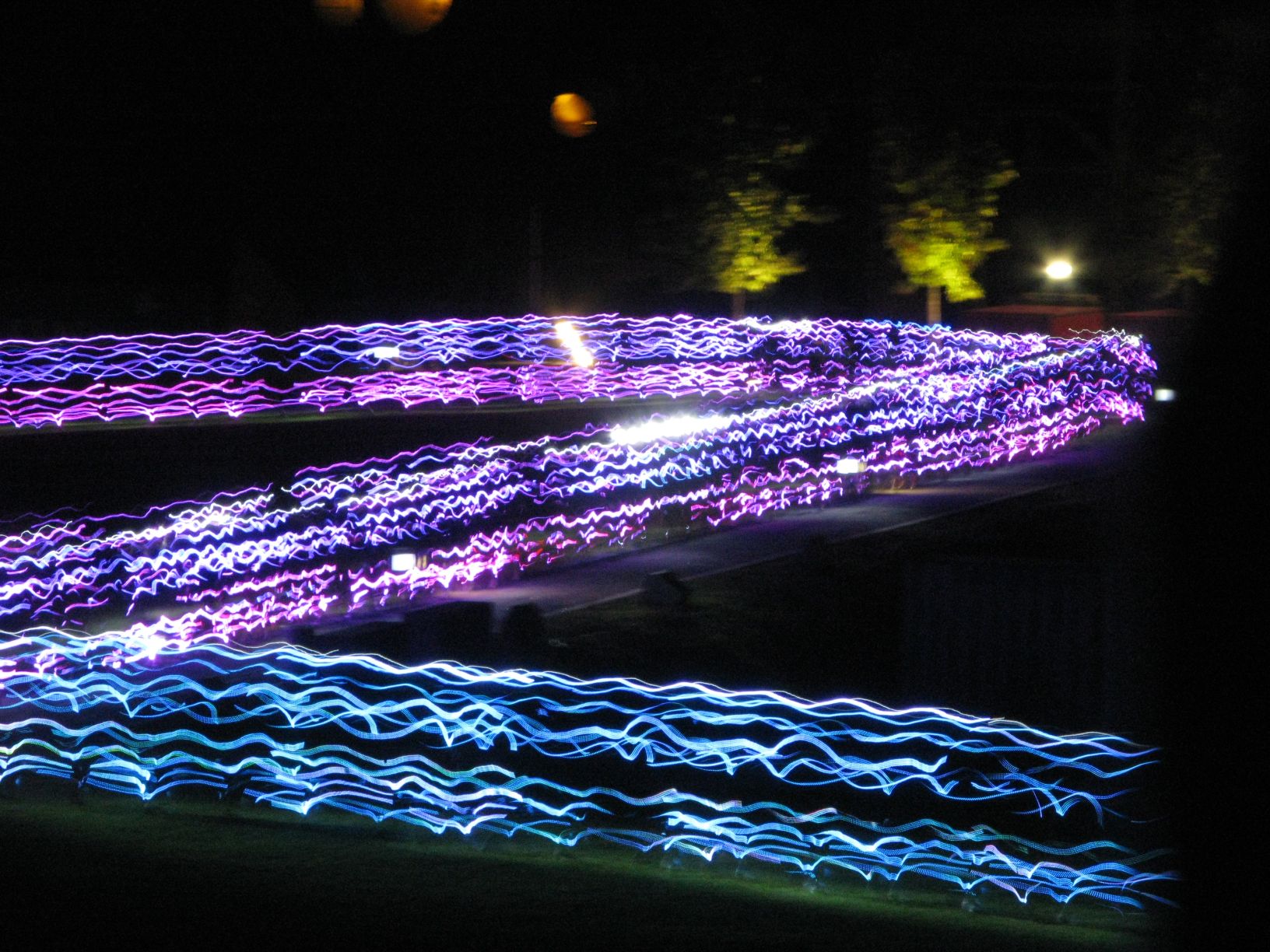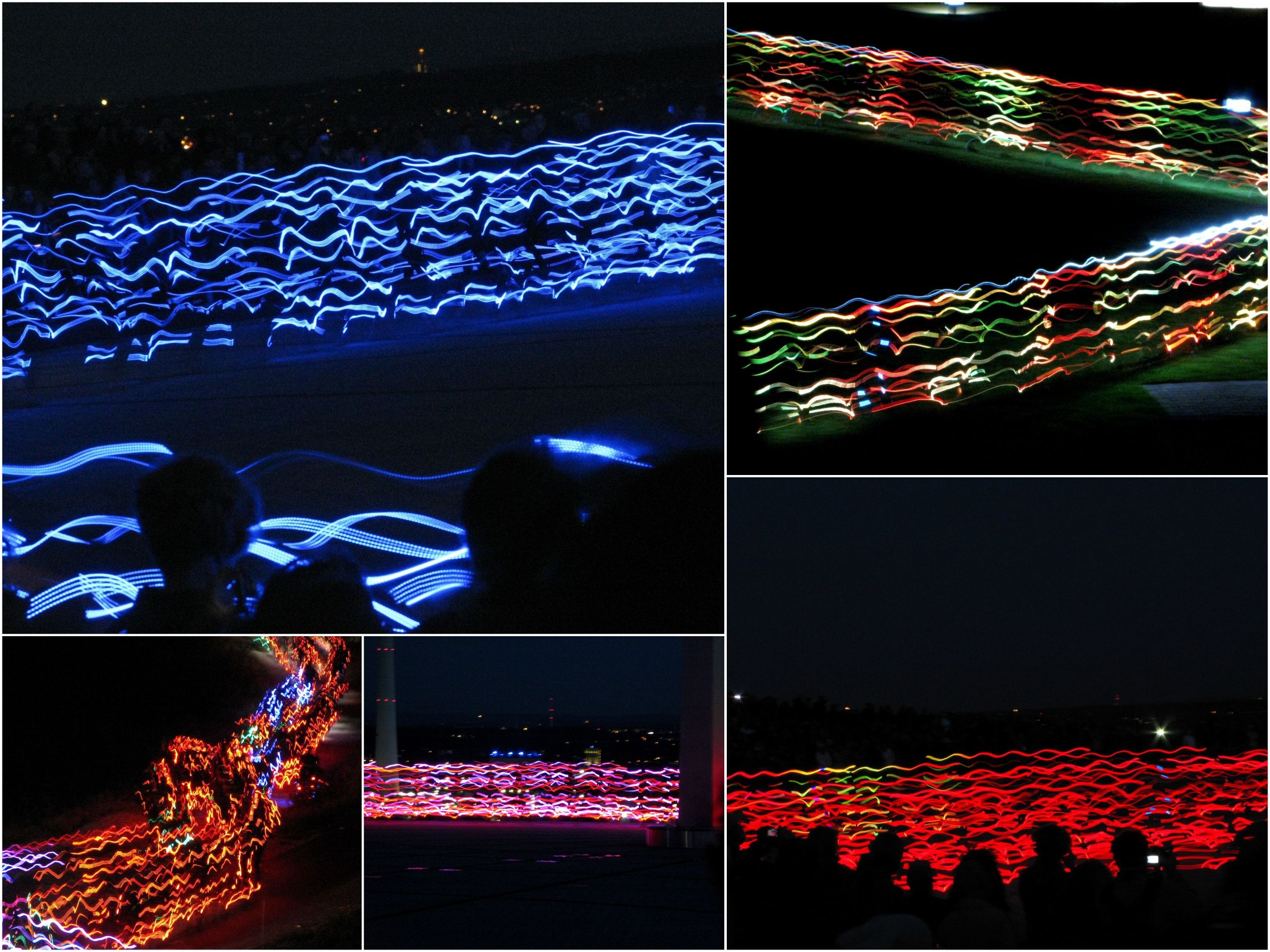 Außerdem wird jeden Abend am Start- und Zielort eine etwa 20 Minuten lange Show geboten. Gleich nach Sonnenuntergang beginnen die Läufer in einer genau festgelegten Choreografie zu laufen, das kann man in Worten kaum beschreiben. Bei entsprechender Belichtung und mit etwas Geschick (ich bin da auch kein Profifotograf) ergeben sich dann Bewegtbilder, die man sonst allenfalls hinbekommt, wenn man versucht hat die Auto Rückleuchten an der Autobahn zu fotografieren. Aber das ist nur ein sehr vager Vergleich.