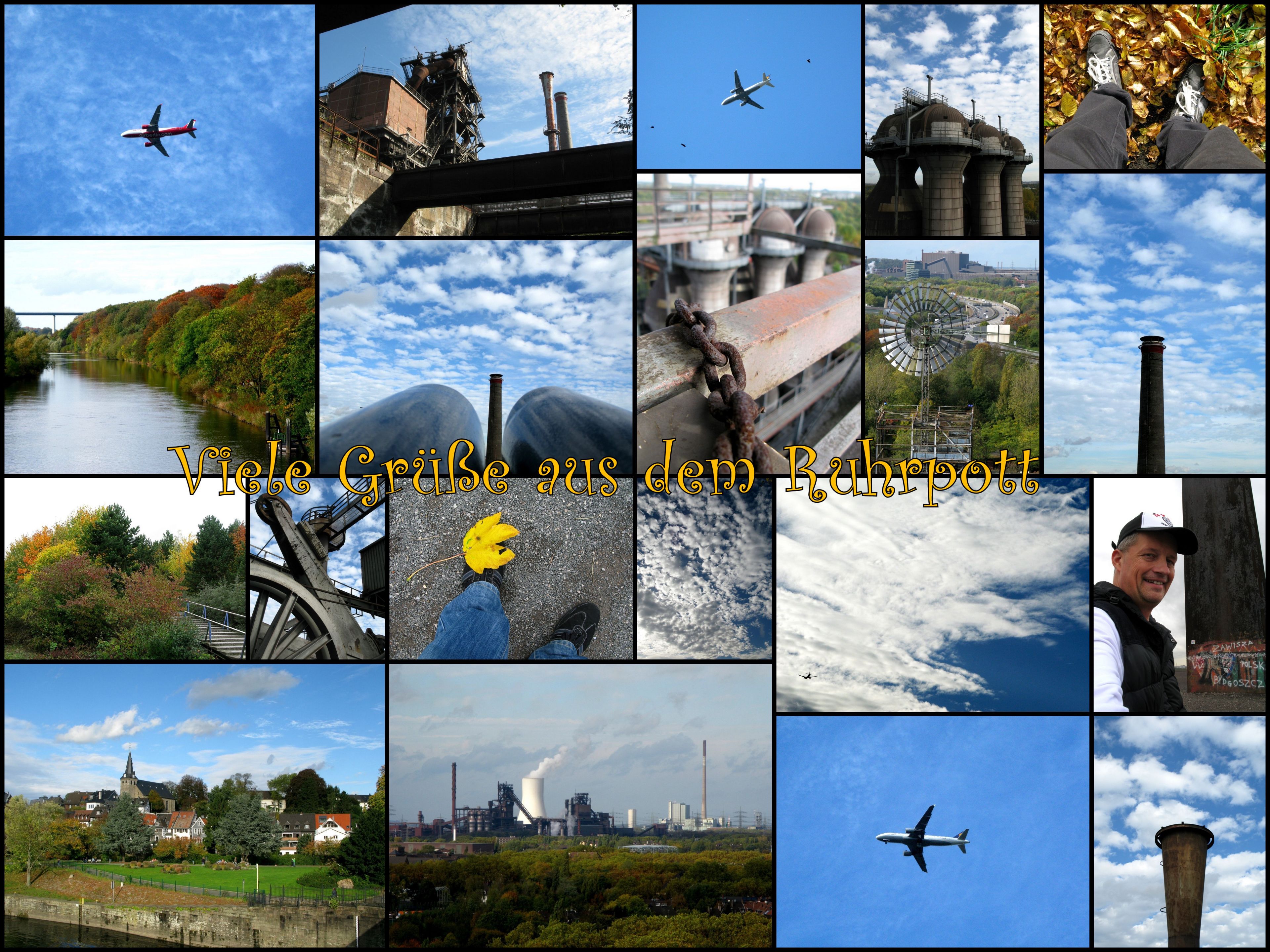 Als ich vorletzte Woche mal wieder so’n bisschen Urlaub geniessen durfte, habe ich mir vorgenommen nicht in Streß zu verfallen. Ich wollte nur mal hierrein, mal dortrauf, einfach ein bisschen dabeisein, wenn die letzten schönen Herbsttage da so rumliegen. So war ich z.B. mal wieder im Landschaftspark Duisburg Nord, weil das neue Colibri Magazin erschienen ist und ich es immer noch nicht aboniert habe. Und weil ich einmal da war, habe ich auch gleich mal nachgesehen, ob denn der Hochofen 5 nach der Renovierung wieder freigegeben ist. Und? Ja war er, also nix wie ab nach oben. Die Treppe ist Abenteuer, für alle die nicht ganz schwindelfrei sind, aber wenn man dann einmal oben ist, ein Traumausblick auf Ikea 😉 … auf die A42, auf Duisburg, Mülheim, Oberhausen eben auf alles. Der Himmel riß auf und die blaue Bläue kam heraus.
