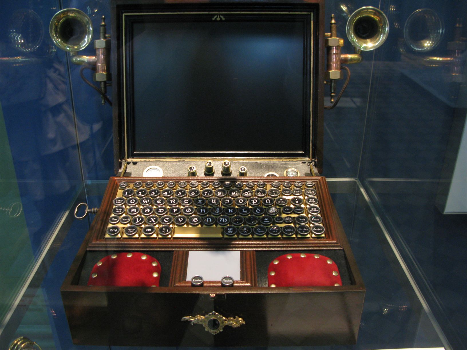 Die kleine aber feine Ausstellung zeigt jedenfalls an Hand von Bildern, Erzählungen und Alltagsgegenständen die Geschichte der Subkulturen des letzten Jahrhunderts. Die jüngste Bewegung „Steampunk“ war mir nicht mal bekannt. Als ich das per Instagram schrieb, schrieb mir Haydee von Zauberhaft Wohnen, daß ich doch mal googeln möge. Habe ich getan und ganz tolle Bilder gefunden. Eines betrifft z.B. das Ausstellungsstück „Uhl`scher Kalkulator“ (Laptop kann jeder 😉 ) und daß man einen USB Stick mit einem Wasserhahn versieht, damit die Daten fließen versteht sich von selbst 😀 .
