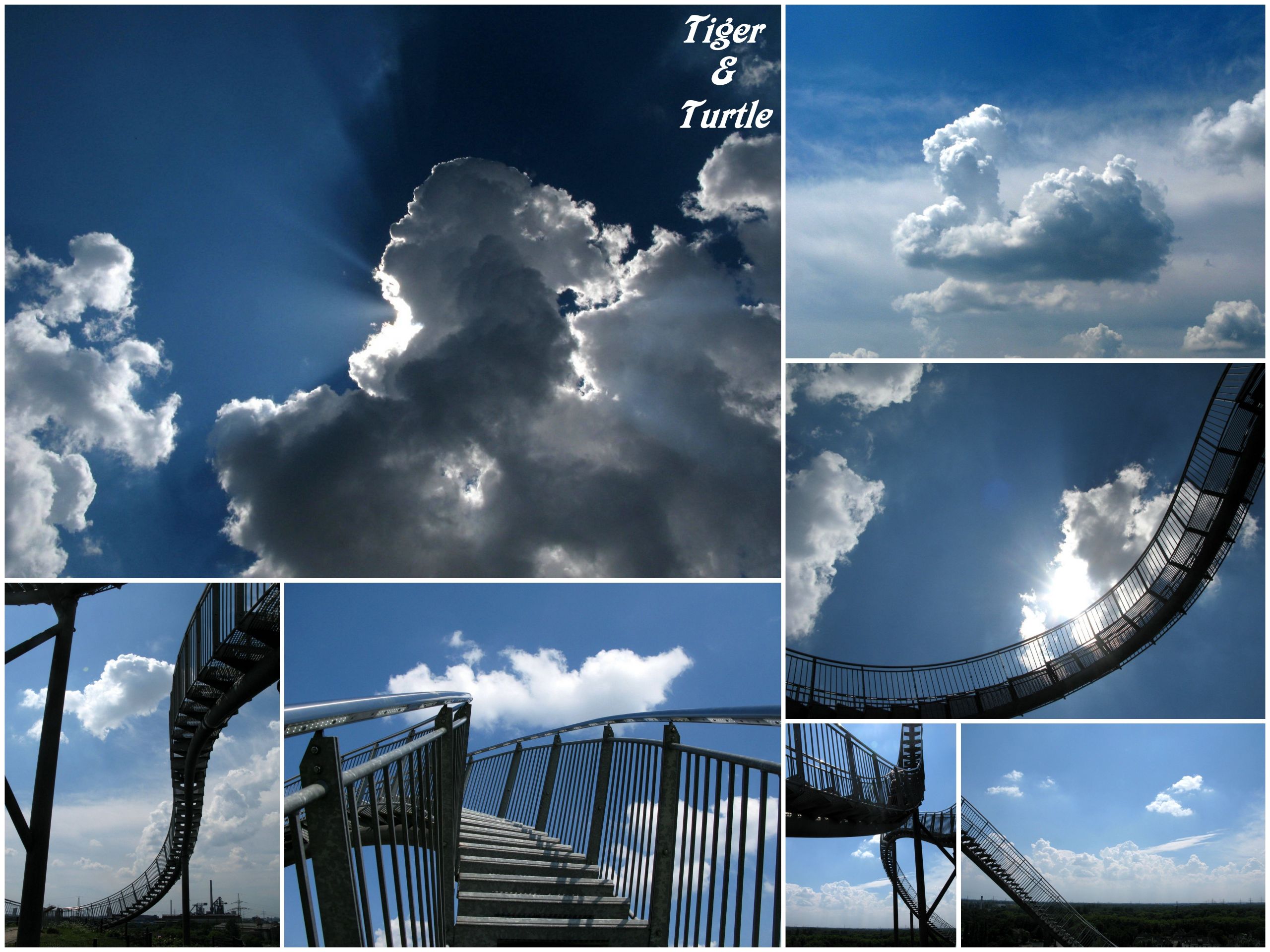 Und wo war ich sonst noch so? Zum x-ten Mal zur Achterbahn „Tiger & Turtle“, zum wiederholten Besuch im Rheinpark und den Aussichtsturm am Wolfssee habe ich auch erstürmt. Kennt ihr aber alles schon, oder? Also werde ich eine Auswahl Bilder in die Alben von „Ruhr2014“ hochladen und zeige euch hier nur ein paar Collagen. Was ich euch aber auf jeden Fall ans Herz legen darf sind die Tierbilder aus dem Duisburger Zoo oder die Blütenbilder aus dem Essener Grugapark. Über die Ausstellung „1914 Mitten in Europa“, welche ich am letzten Sonntag in der Mischanlage der Kokerei Zollverein besucht habe, gibt es einen eigenen Beitrag, wenn ich die Bilder gesichtet habe.
