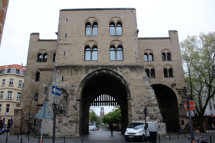 Der Malakoffturm markiert den Eingang zum Rheinauhafen und oberhalb des Schokoladenmuseums bietet eine große, frei zugängliche Aussichtsterasse ein Blick auf den Rhein und die weiter hinten liegenden Kranhäuser. Ich nutze nach soviel Fußweg jetzt zum ersten Mal meine Fahrkarte für den ÖPNV. Die Köln Card, mit der es im Übrigen auch vergünstigte Eintrittspreise in verschiedenen Museen, bei der Seilbahn usw. gibt, bringt mich vom Severinsplatz an den Chlodwigplatz. Den kennt ihr vielleicht aus Karnevalsübertragungen, denn hier steht die südliche Torburg, die Severinstorburg. Während ich mir ein Metzgerbrötchen (Brötchen mit einer dicken Scheibe Fleischwurst) gönne studiere ich meinen Spickzettel, dazu aber morgen mehr im zweiten Teil von „Köln – Altstadt, Dom und Veedel“.