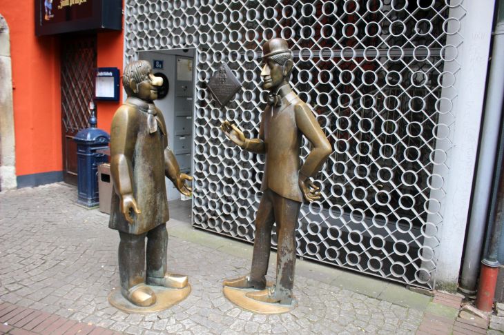 Jetzt geht es in die Altstadt, Alter Markt mit sehenswerten Häusern wie z.B. das vom Brauhaus Gaffel (HsNr. 20/22), der Brunnen mit dem Denkmal für Jan von Werth, das historische Rathaus und um die Ecke die beiden Kölner Originale „Tünnes und Schäl“. Der bauernschlaue, knollnasige Antonius und der schlitzohrig, hinterhältig aber immer gut gekleidete Schäl stehen etwas versteckt und ich mußte etwas suchen, aber das gehört wohl dazu, wenn man zum ersten Mal in Deutschlands ältester Großstadt unterwegs ist. Die Nase(n) zu reiben soll übrigens Glück bringen, hätte ich das mal vorher gewußt 😮 .