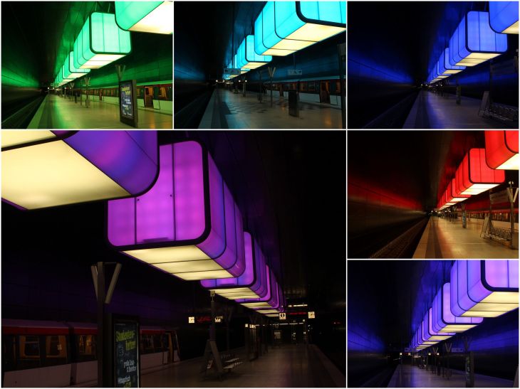 Da ich den Fisselregen satt hatte, verzog ich mich in die U-Bahn und fuhr zur Station „Hafencity Universität“. Die bunten Cuben an der Decke der Station wechseln ihr Licht alle paar Minuten und laden Fotografen regelrecht zum fotografieren ein. Den Tagesabschluß verbringe ich dann noch im Zollmuseum in der Speicherstadt. Hier erlebt ihr die Geschichte des Zolls von damals bis heute, bekommt einen Einblick in die Grenzkontrollen zur ehemaligen DDR und seht, was der Zoll heute so macht. Der Eintritt in dieses Museum, zu dem auch noch das vor der Türe liegende Boot der Küstenwache gehört, kostet 2,- €/Erw. incl. Bootsbesichtigung.
