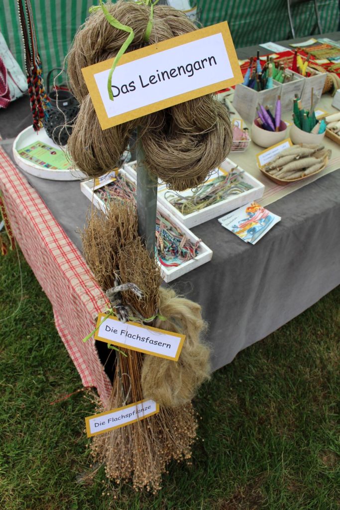 Ich zog stattdessen weiter, das Hämmern des Schmieds dringt herüber und der Duft selbstgemachte Seife erreicht die Nase. Interessierten wird erläutert, wie die Flachspflanze und das Endprodukt das Leingarn aussieht, wie man natürlich färbt oder (neu dabei) wie man eine Glocke gießt. Die ebenfalls schon bekannte Falknerin der Horus Falknerei stellte ihre gefiederten Freunde vor und die Tierschule hatte wieder außergewöhnliche Tiere dabei, die man sonst eher selten auf dem Arm sieht z.B. ein Frettchen und ein Stinktier 😮 .