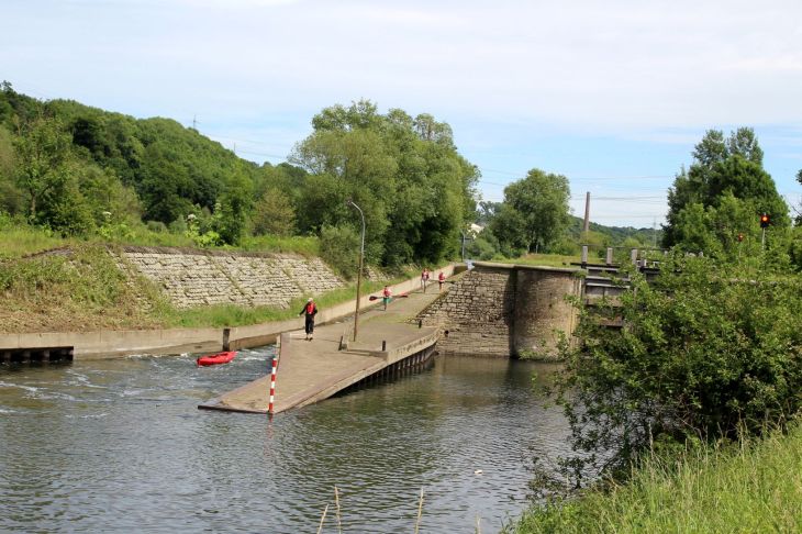 In der Ferne wird die Spitze des Schornsteins der Horster Mühle sichtbar und einige Minuten später sind auch die Gebäude zu sehen. Heute befindet sich hier wie erwähnt ein Wasserkraftwerk, das durch die aufgestaute Ruhr gespeist wird. Da ich mir kein festes Ziel gesetzt hatte und auch keine Vorstellung hatte, wie weit ich schon vom Wichteltal entfernt war, nahm ich mir zunächst die Schleuse und danach die nächste Brücke über die Ruhr als Ziel vor. Die Schleuse ist in der Tat etwas besonderes, denn die alle paar Minuten an mir vorbeipaddelnden Boote müssen dort, wie es an Schleusen üblich ist, einen Höhenunterschied überwinden. Das bedeutete aber nicht jedes Mal Schleusentore auf, Schleusentore zu, sondern es hieß aussteigen, das Boot an die Leine nehmen und in einem gesonderten Kanal (Treidelkanal) nach unten führen, während man selber nebenher läuft. Am untern Ende der Schleuse wird dann wieder eingestiegen.