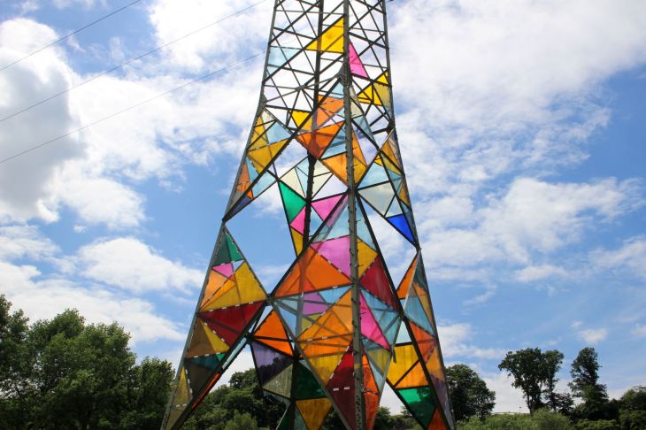 Davor und danach ist der Weg so ebenerdig, wie man es von einem Flußtal erwartet. Wenn ich das richtig interpretiert habe, handelt es sich hier um einen Teil des Ruhrtalradwegs, daher auch die Fahrräder. Die Sonne stand günstig, so daß es ein paar neue Fotos des bunten Strommastes gab. Während neben mir immer wieder Paddelboote über die Ruhr schippern, mache ich mich auf die Suche nach der Horster Mühle, die heute ein Wasserkraftwerk ist. Am gegenüberliegenden Ufer erscheint ein kleiner Campingplatz, so wie man ihn kennt mit Campingwagen und Zelt. Unmittelbar dahinter stehen bunte Bauwagen. Wenn ihr immer schon mal wie Peter Lustig im Bauwagen übernachten wolltet, hier scheint das möglich.