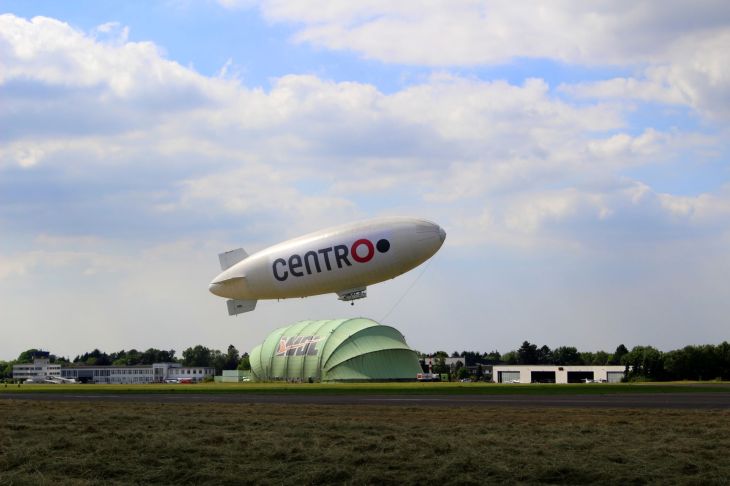 Ich konnte unmöglich auf direktem Weg wieder nach Hause fahren. Der Rückweg führte mich daher über Essen, entlang des Geländes der Zeche Zollverein (wo an dem Tag der „Geo Tag der Natur“ stattfand) und über die A52 vorbei am Flughafen Mülheim/Essen. Ich hatte ihn bereits von der Halde Hoheward in weiter Ferne gesehen und ich hatte nochmal Glück an diesem Sonntag. Das Luftschiff Theo setzte gerade als ich am Flughafen ankam wieder zur Landung an, um neue Passagiere aufzunehmen. Dieses Mal hielt ich die Kamera gleich an der Lilienthalstraße (gegenüber eines Blumencenters) auf das Geschehen.