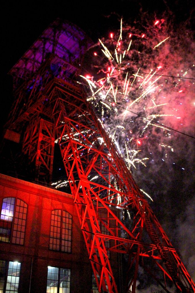 Es ist 0.00 Uhr als ich an der Zeche Rheinpreußen ankomme. Markus Krebs beginnt gerade sein Stand-up-Comedian Programm, während ich den illuminierten Förderturm ablichte. Markus Krebs ist nicht so ganz mein Fall, aber er ist eben auch ein Ruhrpottkind. Ich bin um 0.15 Uhr hellwach, so eine Extraschicht puscht irgendwie 🙂 . Also warte ich auch in Moers noch das Feuerwerk ab, daß um 0.30 Uhr folgen soll. Förderturm mit Feuerwerk. Kann man machen, auch wenn LaPaDu nicht zu toppen ist.