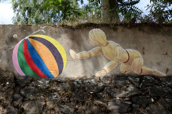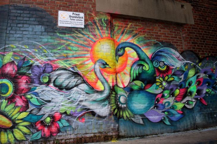 Das Projekt nennt sich Rhine Side Gallery. Ihr lauft auf dem neu gestalteten Rheindeich in nördliche Richtung bis ganz ans Ende oder kommt gleich zum Zollamt in Uerdingen. Von dort sind es nur wenige Meter bis zur Strandbar. Haltet Ausschau nach dem alten Hafenkran, der ist eigentlich nicht zu verfehlen. Bereits auf dem Weg zur Strandbar begegnet ihr den ersten Street Art Kunstwerken und rund um die alte Lagerhalle gibt es noch eine ganze Reihe mehr davon.