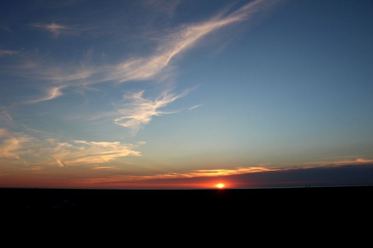 Zum Abschluß flitze ich nochmal für das obligatorische Sonnenuntergangsbild an den Strand und erwische die Sonne grade noch, bevor sie in der Nordsee untergeht. Mehr Bilder bei Flickr oder Google Photos.