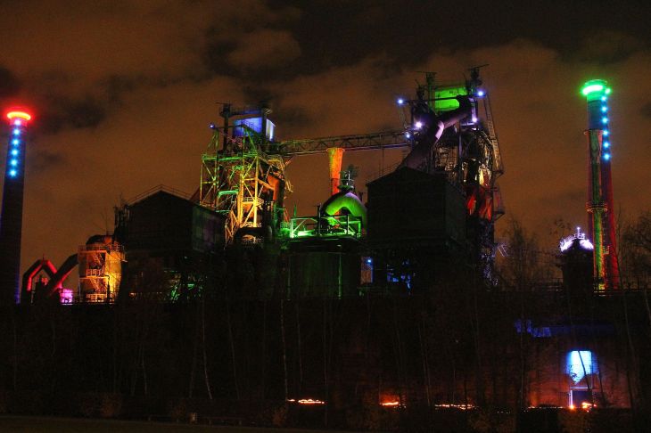 Das alte Hüttenwerk mit Hochofen, Kaminen und umliegenden Gebäuden wird am Wochenende (Fr.-So.) und an Feiertagen in ein buntes Licht getaucht. Wenn man aus Richtung Westen über die Autobahn 42 kommt, kann man die bunte Beleuchtung bereits sehen. Auch wenn ich schon einige Mal dort war, ist es immer wieder schön. Kleiner Tipp, für die weniger beleuchteten Ecken oder die Treppe nach oben auf den Hochofen, kann eine Taschenlampe nicht schaden.