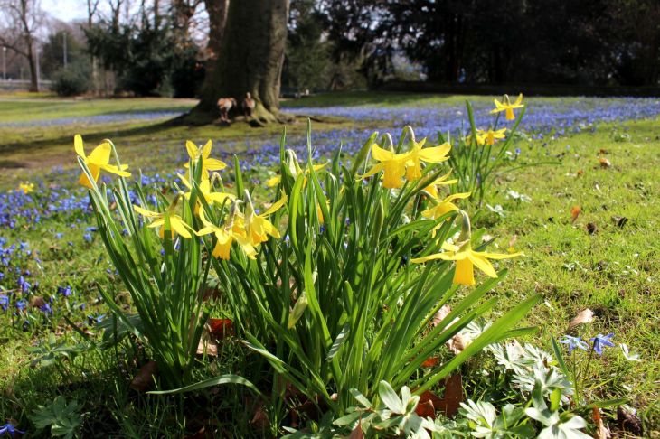 Ende März blühen zwar nur die Krokusse und einige Narzissen, aber von Woche zu Woche kommen mehr Blüten dazu, bald auch wieder die Tulpen. Etwas weiter im Stadtinneren spaziere ich gerne durch den Hofgarten. Nachdem der KöBogen I fertig ist und alle Sturmschäden von Tief Ela (2014) beseitigt sind, ist es auch der Hofgarten wieder wert besucht zu werden.