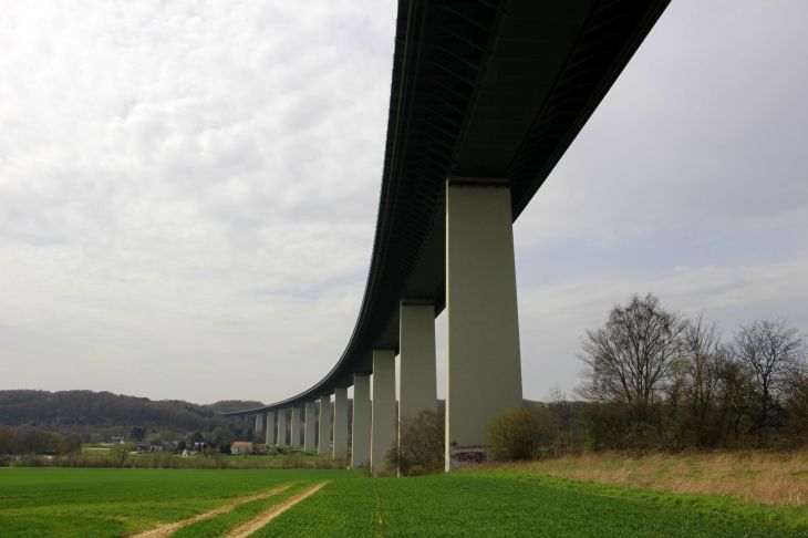Die Ruhrtalbrücke, mit 1.830 Metern Deutschlands längste Straßenbrücke aus Stahl, soll lt. neuesten Planungen in den nächsten 10-15 Jahren erweitert werden, weil auch sie mittlerweile mehr und mehr durch LKW Verkehr belastet wird. Von unten bekommt man davon allerdings wenig mit, denn der Verkehr verläuft, wenn man an der tiefsten Stelle steht, rd. 65 Meter über einem hinweg. Ich habe letztens ein Bild mit blühendem Raps unterhalb der Brücke gesehen und wußte spontan, da muß ich zur Rapsblüte wieder hin 🙂 .