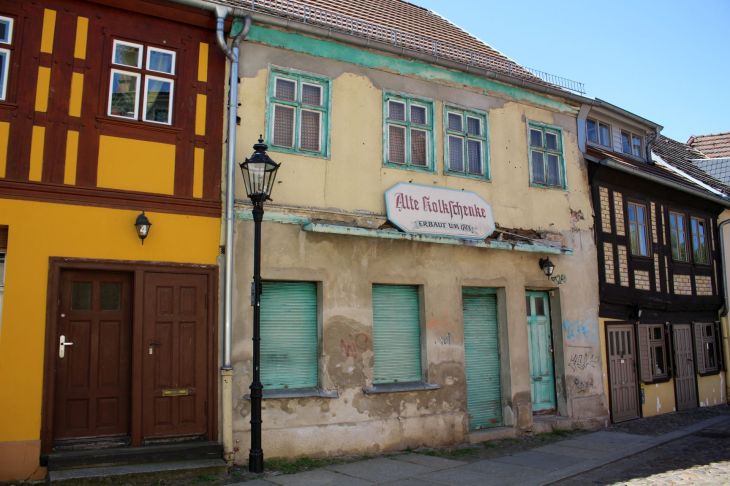 Nach einer großen Außenrunde verlasse ich die Zitadelle und besuche das älteste Siedlungsgebiet innerhalb der Altstadt von Spandau, Behnitz bzw. Kolk. Auf der anderen Seite der Brücke über die Havel zeugen holperiges Kopfsteinpflaster, Fachwerkhäuser und der Rest der Spandauer Stadtmauer von früher. Nach soviel Eindrücken könnte ich jetzt etwas kühles gebrauchen und siehe da, bevor ich wieder auf die Hauptstraße trete, lacht mich eine Eisdiele an. Mit dem Eisbecher in der Hand geht es zu Fuß weiter in Richtung Rathaus. Cafes, Geschäfte, die Spandauer Altstadt hat alles, was man braucht, ohne den touristischen Trubel.