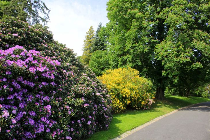 Zum Glück wurde am 30. April 2018, also wenige Tage vor meinem Besuch, der Zugang zur Villa Hügel von der Baldeneyseeseite wieder geöffnet, denn vom Baldeneysee (Regattaturm) sind es keine 5 Min. bis zum Eingang. Der Eintritt kostet übrigens 5,- €, dafür habt ihr dann den ganzen Hügelpark für euch. Wunderschöne Rhododendronbüsche blühten, als ich Anfang Mai dort war und luden zu einem ausgiebigen Spaziergang ein.