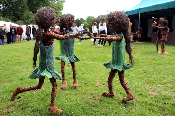 1978 wurde schließlich die Arbeitsgemeinschaft Flachsmarkt e.V. gegründet, die sich um die Organisation und Abwicklung des Flachsmarktes kümmert. Man glaubt gar nicht, daß um die 750 Helfer nötig sind, um den jährlichen Ablauf zu garantieren. Ich glaube, da darf man ruhig mal Dankeschön an alle fleißigen Helfer sagen. Gut gefallen haben mir dieses Jahr die Weidenmädchen und andere ca. 1 Meter große Figuren aus Weidenzweigen. Vielleicht ein bisschen spooky, wenn diese Figuren des Nachts durch den heimischen Garten tanzen, aber auch schön. 😉