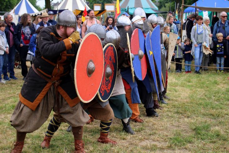 Das waren nur drei von vielen Handwerksständen, an denen insbesondere Kinder auch mitmachen konnten. Daneben gab es die Musiker, Falkner und wie immer die Ritterwiese mit Schwertkämpfen und Reitturnier. Ich liebe ja die Anekdoten am Rande. Weil einer der Ritter eine eroberte Frau ehelichen sollte, diese das aber nicht wollte, kam es zu einem Kampf zwischen dem Ritter und besagter Frau. Zwei ganz kleine Besucher im Vorschulalter feuerten den Ritter lautstark an. „Ritter! Ritter!“. Vermutlich war die #metoo Debatte noch nicht bei ihnen angekommen 😉 .