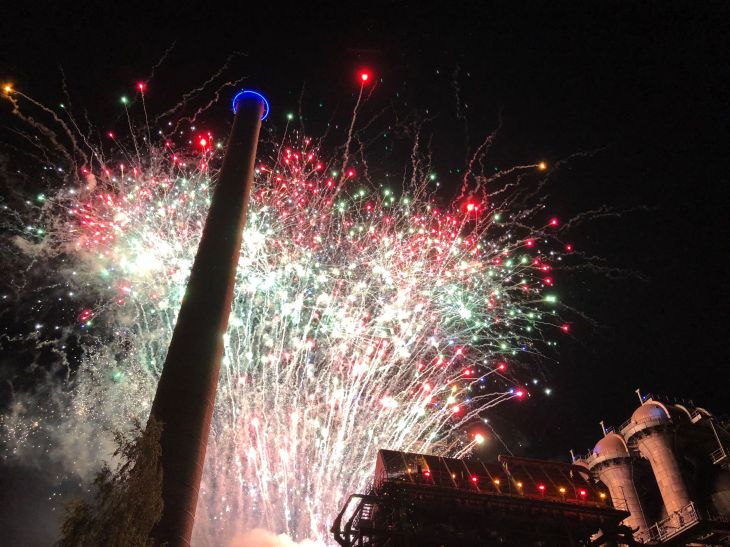 Es ist ca. 23:18 Uhr als mit leichter Verspätung das Feuerwerk startet. Ihr kennt den Landschaftspark Duisburg Nord? Wenn nicht, solltet ihr unbedingt mal herkommen. Neben der regulären Illumination, wurde der Park zur Extraschicht noch bunter als er sonst schon ist. Der Hochofen erwachte dank des Feuerwerks wieder zum Leben, bevor selbiges mit einem riesigen, den Boden vibrierenden, Ruuummmms nach 15 Minuten wieder endet. 300.000 Besucher waren in dieser Nacht unterwegs, ich war einer davon.