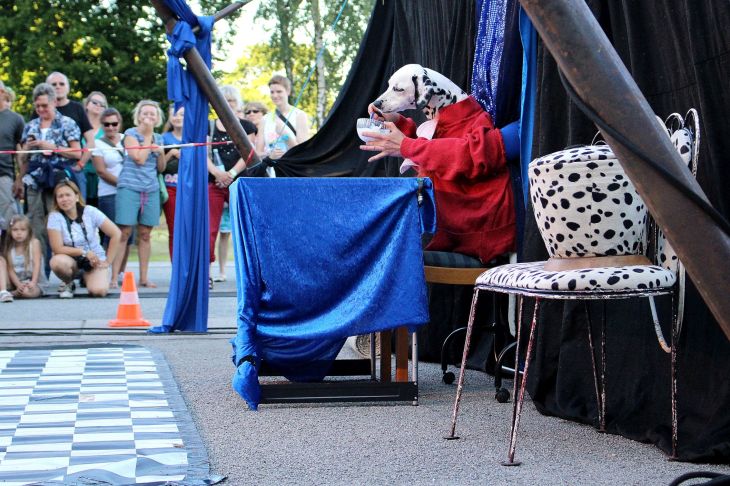 Auf dem Vorplatz der Zeche sitzt unterdessen ein Dalmatiner zu Tisch und genießt sein Abendessen, während Frauchen gleich anschließend Akrobatik am schwingenden Tuch zeigt (ohne Dalmatiner 😀 ). Alleine auf Zollverein gibt es so viele Veranstaltungen und Ausstellungen, daß man hier den ganzen Abend verbringen könnte. Leider sind einige Shows bereits vorbei, andere finden erst später wieder statt. Also führt mein Weg mich weiter, bis aufs Kokereigelände und dort werde ich bei einem Seifenhersteller fündig.