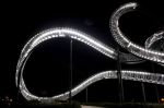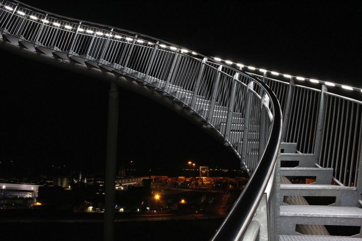 Die Beleuchtung erstreckt sich entlang der Handläufe, so daß das besteigen der Achterbahn selbst keine Probleme machte, lediglich ein paar Besucher, deren einzige Aufgabe es zu sein schien, die Landmarke in Schwingung zu versetzen, sorgten für etwas Ärger. Da so wenig Besucher wie möglich auf den Bildern zu sehen sein sollten, war ich letztendlich rd. 1,5 Stunden mit fotografieren beschäftigt, das ist das Ergebnis.