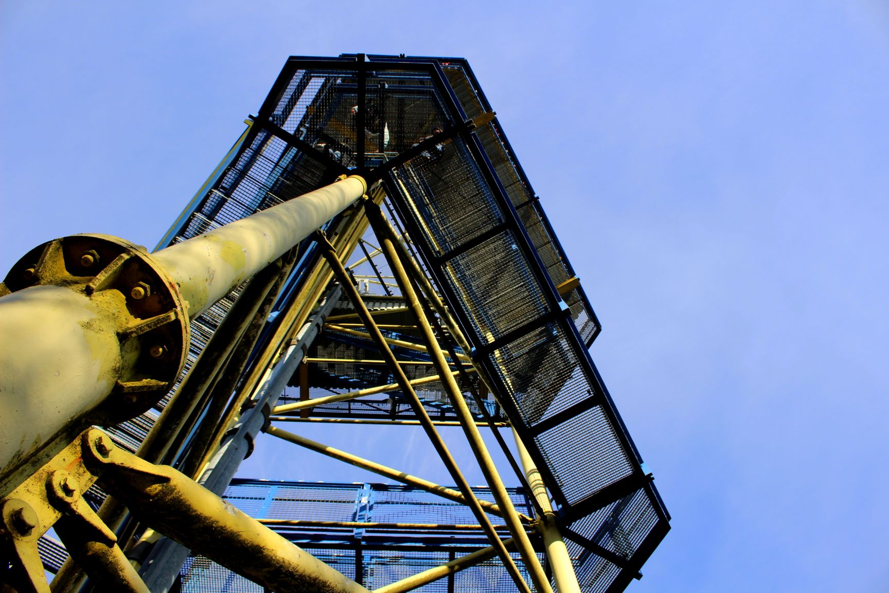 Ihr wißt ja wie das hier am Niederrhein so mit Bergen ist. Wenn nicht gerade jemand eine Halde aufschüttet, dann sind 63 Meter schon ein Berg. Stellt man dann wie hier noch einen 30 Meter hohen Aussichtsturm drauf, sind es schon 93 Meter. Nennen wir ihn Johannes und schon läßt sich bei klarem Wetter vom Johannesturm ganz schön weit gucken.