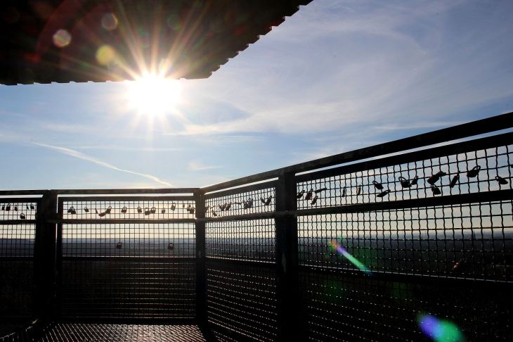 Ja, der Aussichtsturm ist gewöhnungsbedürftig, nicht nur weil er aus Lochgittern besteht, sondern weil er ganz oben auch gehörig schwankt, wenn viele Besucher gleichzeitig rauf- und runtersteigen. Aber in Deutschland ist schließlich alles 3 x TÜV geprüft, man muß sich das nur immer wieder einreden 😮 . Angst und Bange wird mir eher, wenn ich sehe, wie Eltern ihre Jüngsten da ganz alleine rumlaufen lassen.