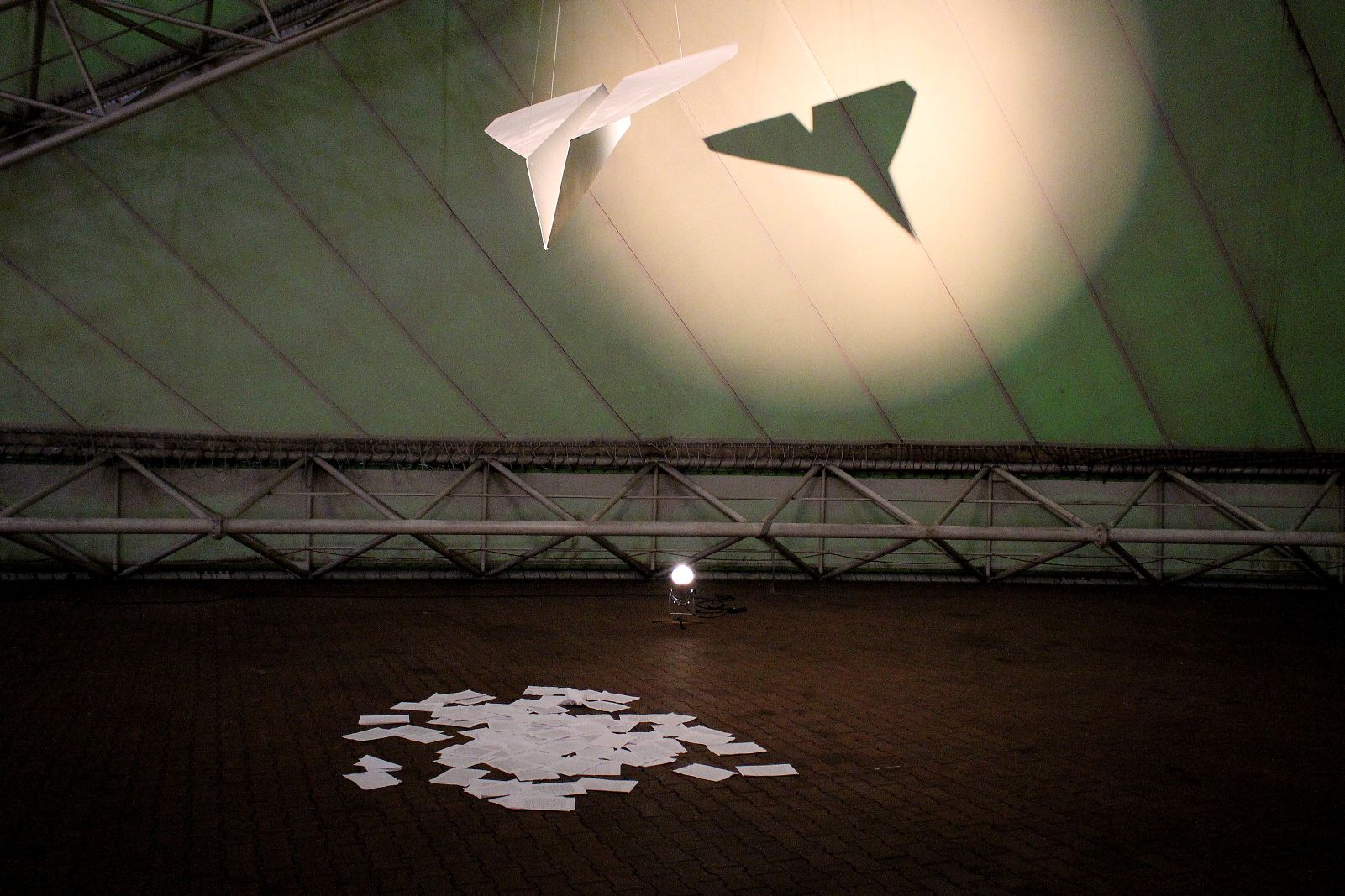 Ja, die heißen wirklich so, da fehlt auch kein Leerzeichen 🙂 . Darauf aufmerksam geworden bin ich durch Dannys Blogbeitrag. Die Künstlerinnen und Künstler setzen sich, ich zitiere, „mit den Themen Luft und Raum sowie Aspekten der Fliegerei auseinander“. So gibt es z.B. das Kunstwerk „Das Spielzeug“, ein überdimensionaler, schattenwerfender Papierflieger aus Aluminium von Vanessa Hötger.