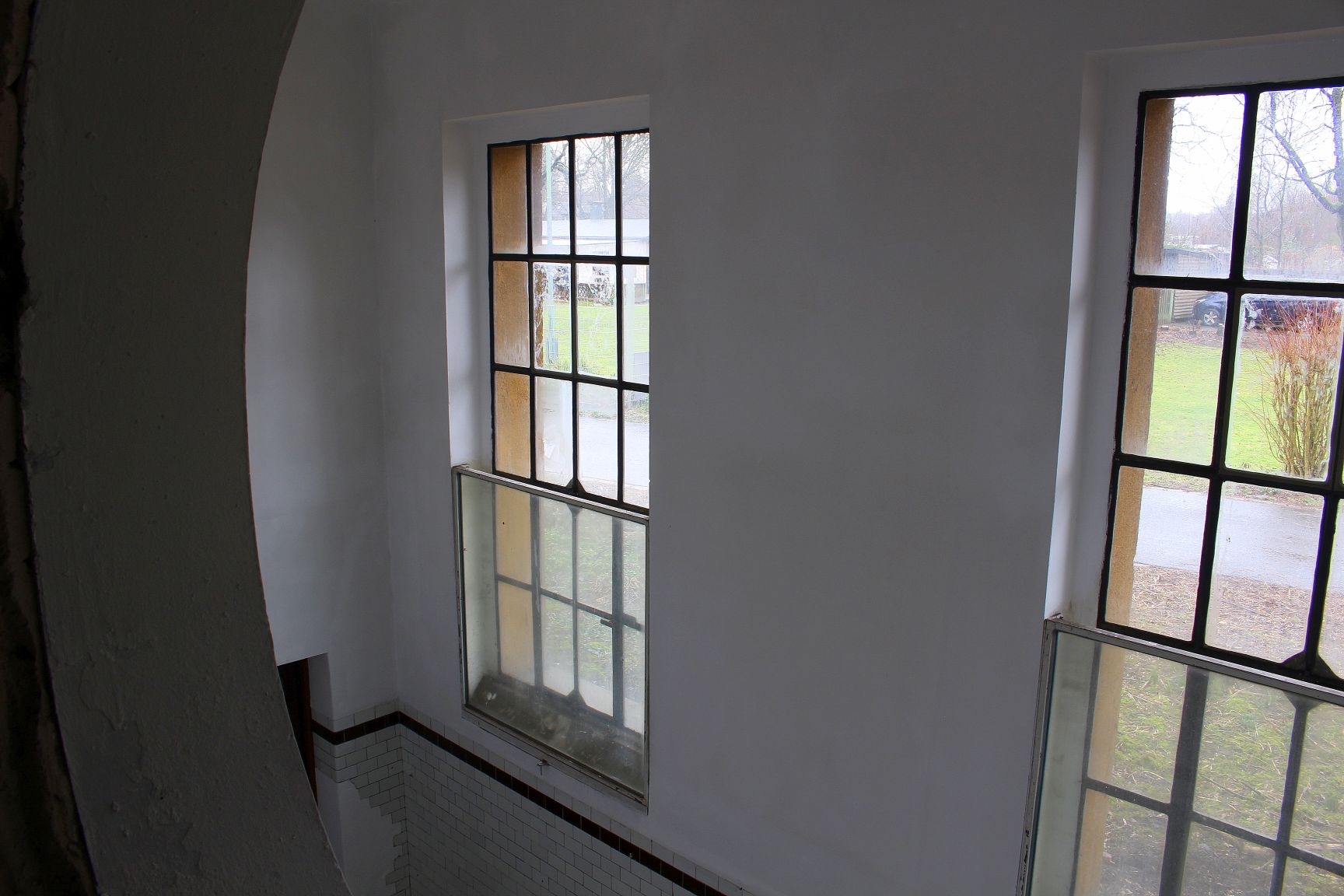Ganz am Ende der Straße steht es da, das Hochwasserpumpwerk plus Klärhalle, erbaut 1909 im ausgehenden Jugendstil und wie so oft, zur damaligen Eröffnung auf dem technisch modernsten Stand. Ich gehe als erstes nach rechts durch den Flur und lande in der Pumpenhalle, zwei Holzbühnen auf Stahlpfeilern füllen den Raum, ein Waschbecken an der hinteren Wand, seit Jahren nicht mehr gesäubert. Nicht besonders spektakulär.