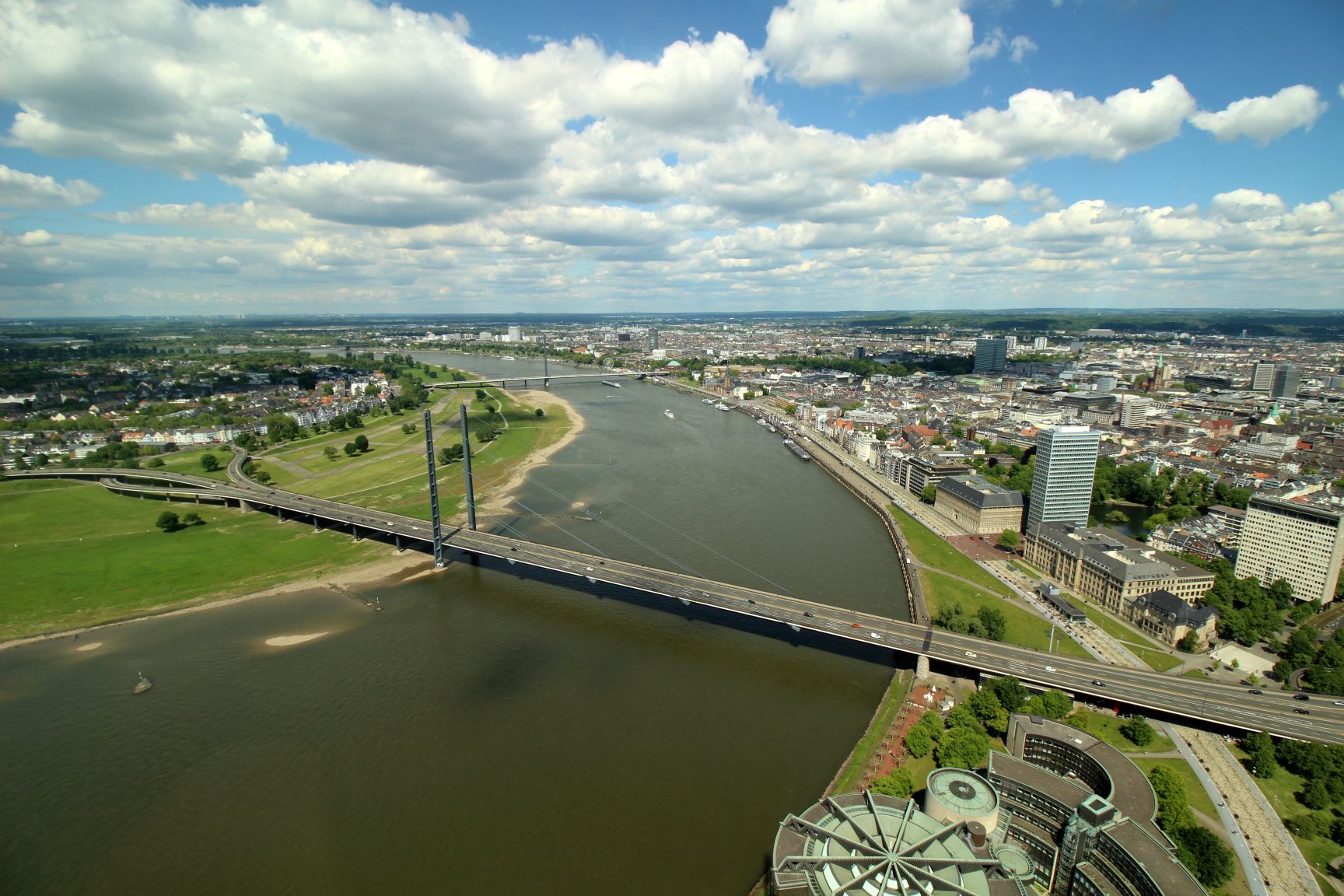 Im Anschluß an den Besuch des Landtags bin ich wenige Meter weiter bis zum Rheinturm gelaufen, denn blauer Himmel und ein paar Wolken sind ein schöner Kontrast für Fotos. Der Rheinturm kann von 10.00 Uhr bis 00.00 Uhr, besucht werden und mein letzter Besuch ist auch schon wieder einige Jahre her. Der Eintritt kostet zwar stolze 9,- € aber nachdem euch ein Aufzug mit 4 Metern pro Sekunde in 168 Meter Höhe gebracht hat, bietet sich ein toller Ausblick.