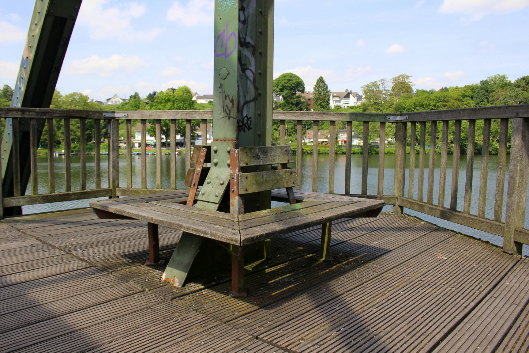 Nun nähere ich mich der Brücke in Kupferdreh, die mir die Möglichkeit gibt, wieder zurück ans andere Ufer des Sees zu gelangen. Gefühlt war das schon über die Hälfte der Strecke. Am anderen Seeufer geht der Weg für Radfahrer geradeaus und für Fußgänger links ab. Ich bin ganz kurz irritiert, denn der See liegt links von mir nicht mehr in unmittelbarer Sichtweite. Zwischen Weg und See liegt ein Campingplatz o.ä., aber nach einigen 100 Metern kommt der Baldeneysee wieder in Sicht.