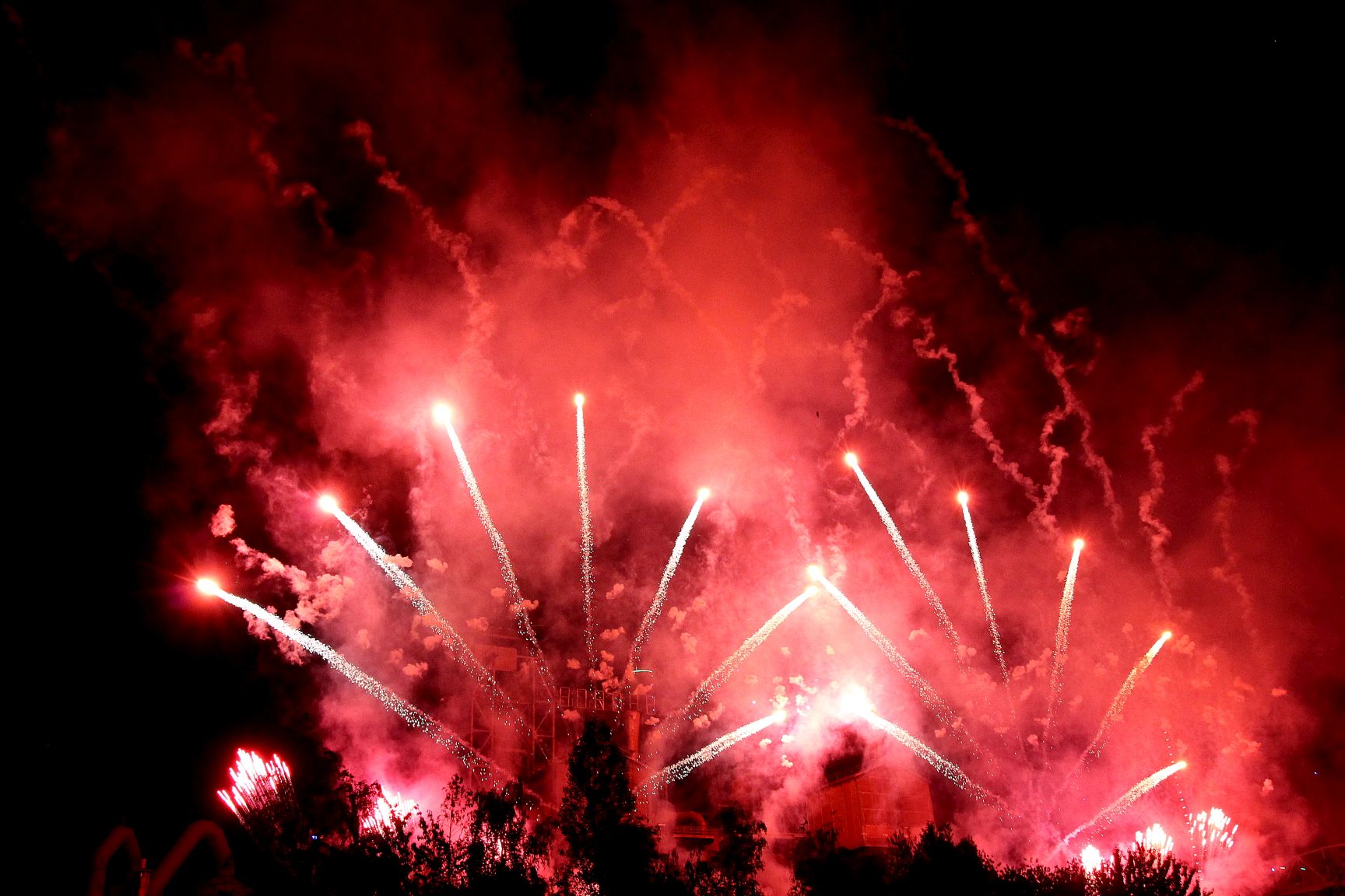 Bei Erreichen des Landschaftsparks stutzte ich kurz, denn der Platz vor dem Hochofen war 30 Min. vor dem Feuerwerk noch fast leer. Das sprach gegen alle Erfahrungen der letzten Jahre. Eine kurze Nachfrage brachte sogleich den Grund, dieses Jahr fand das Feuerwerk auf der Hochofenrückseite genauer dem Bunkervorplatz statt. So gerne hätte ich auch hier noch viel mehr Zeit verbracht, denn Klanginstallationen mit Geräuschen des Parks, das Aktionstheaters PAN.OPTIKUM, alles das habe ich nur am Rande mitbekommen.