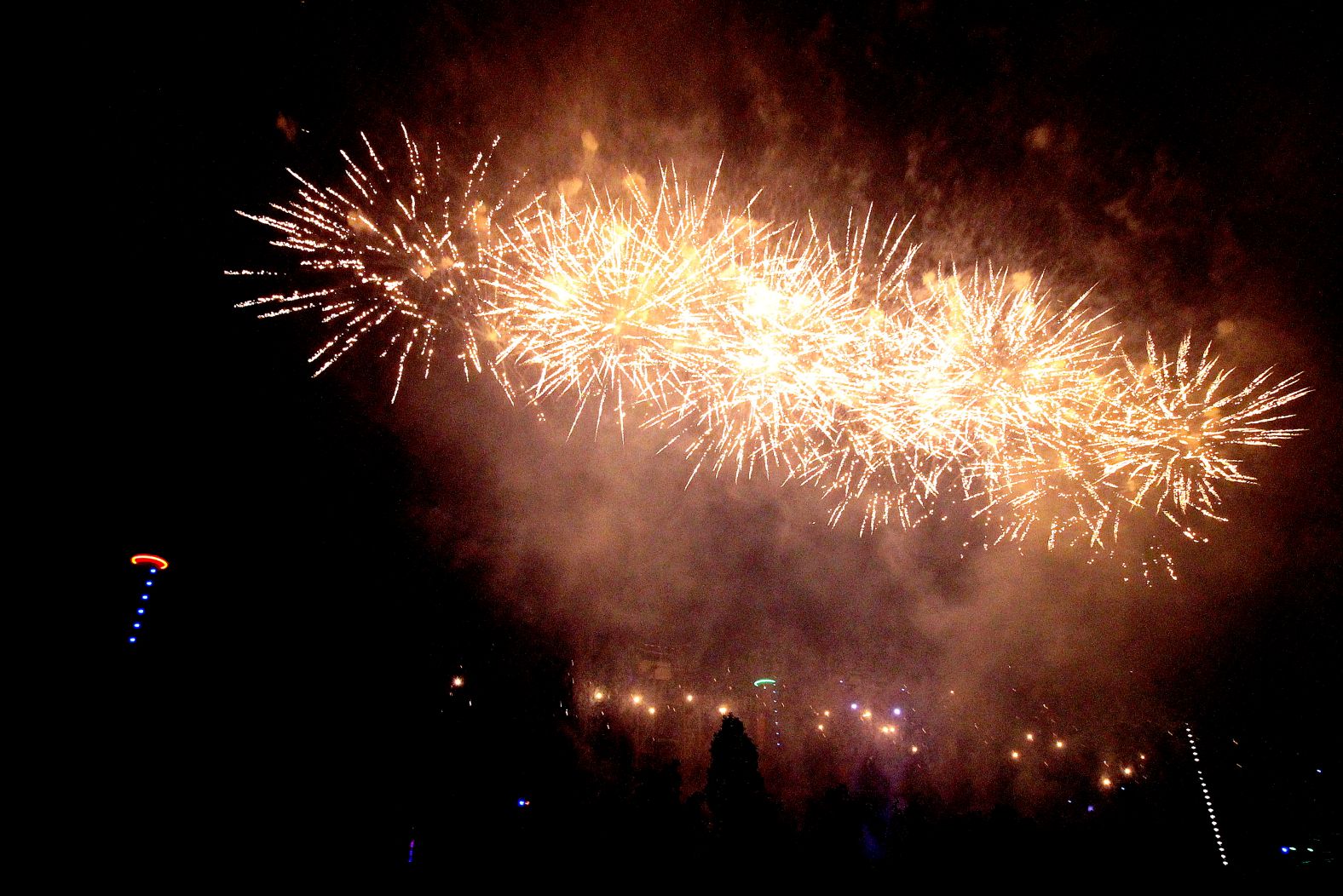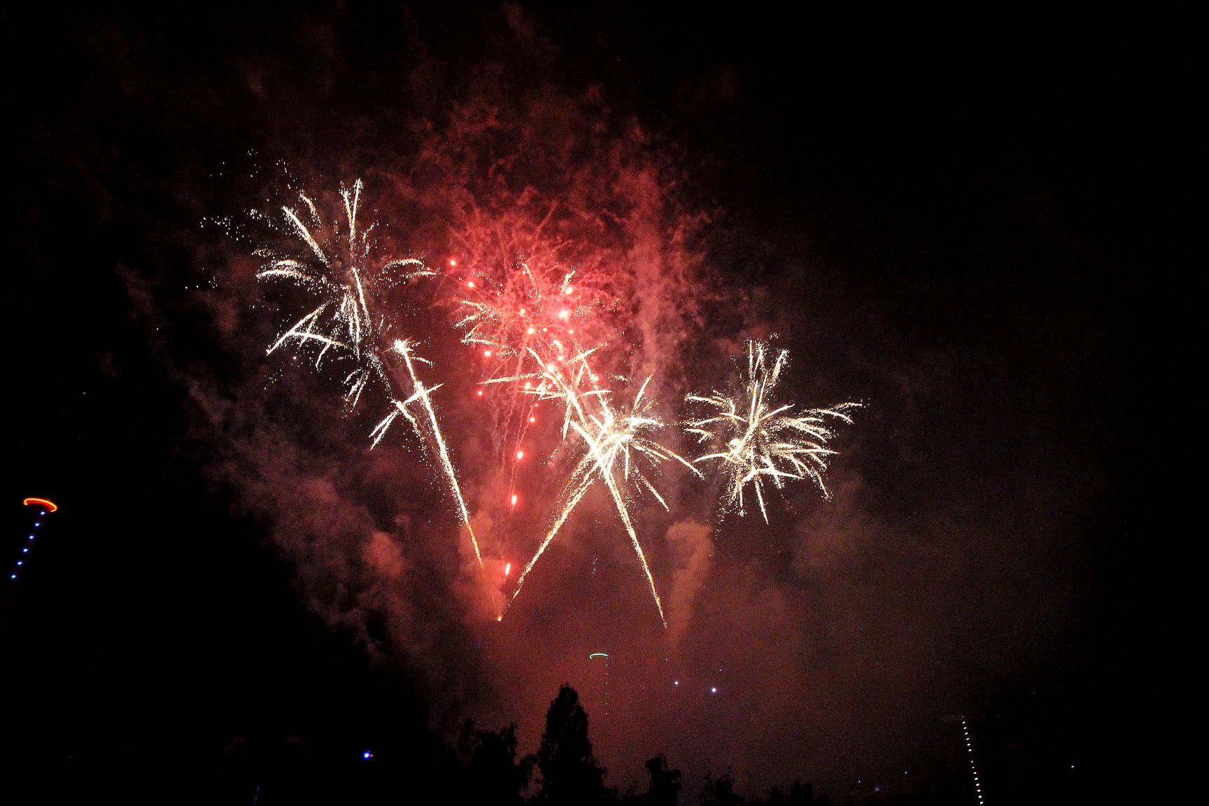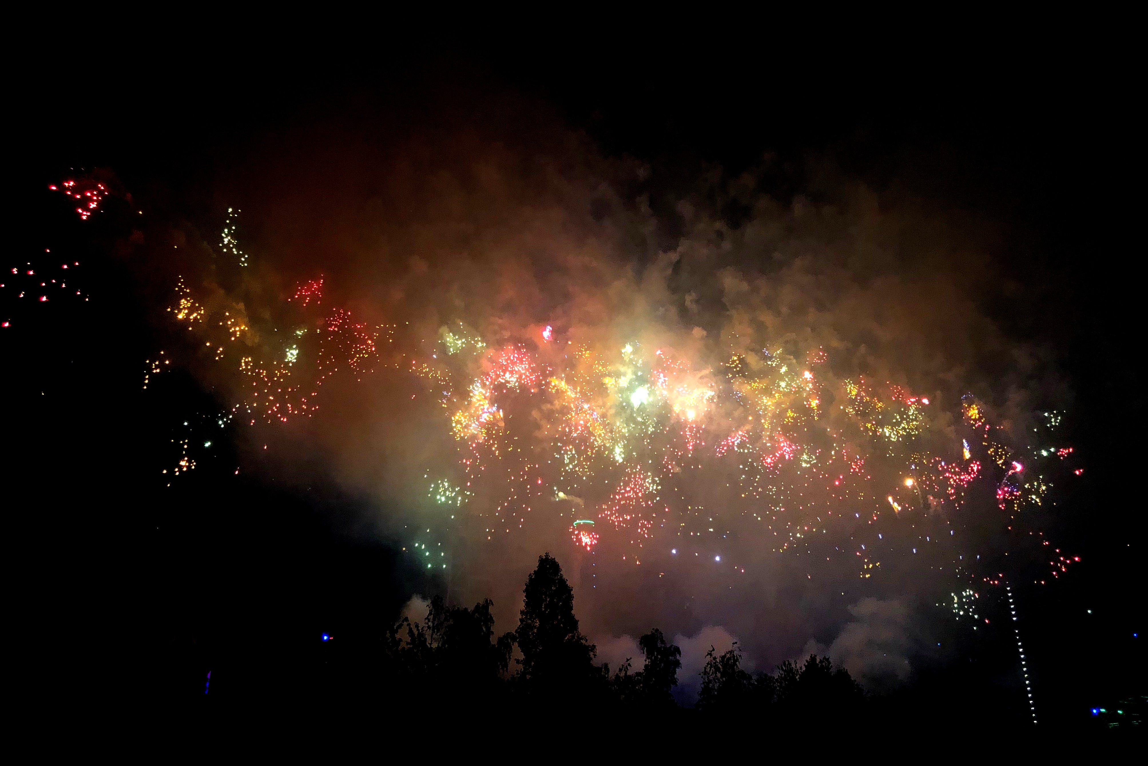 Dafür gab es ein Mega Feuerwerk. Holla die Waldfee, zum 25. Jubiläum des Landschaftsparks Duisburg ging 12 Min. optisch wie musikalisch die Post ab. Über die gesamte Breite der Hochofenkulisse wurden Feuerwerkskugeln im Sekundentakt in den Himmel geschossen und zum Schluß gab es eine Explosionskaskade, daß eimen fast die Ohren fliegen gingen. Der Applaus setzte daher auch mit leichter Verzögerung ein, denn viele hatten die Finger noch in den Ohren (oder wie ich am Fotoapparat).