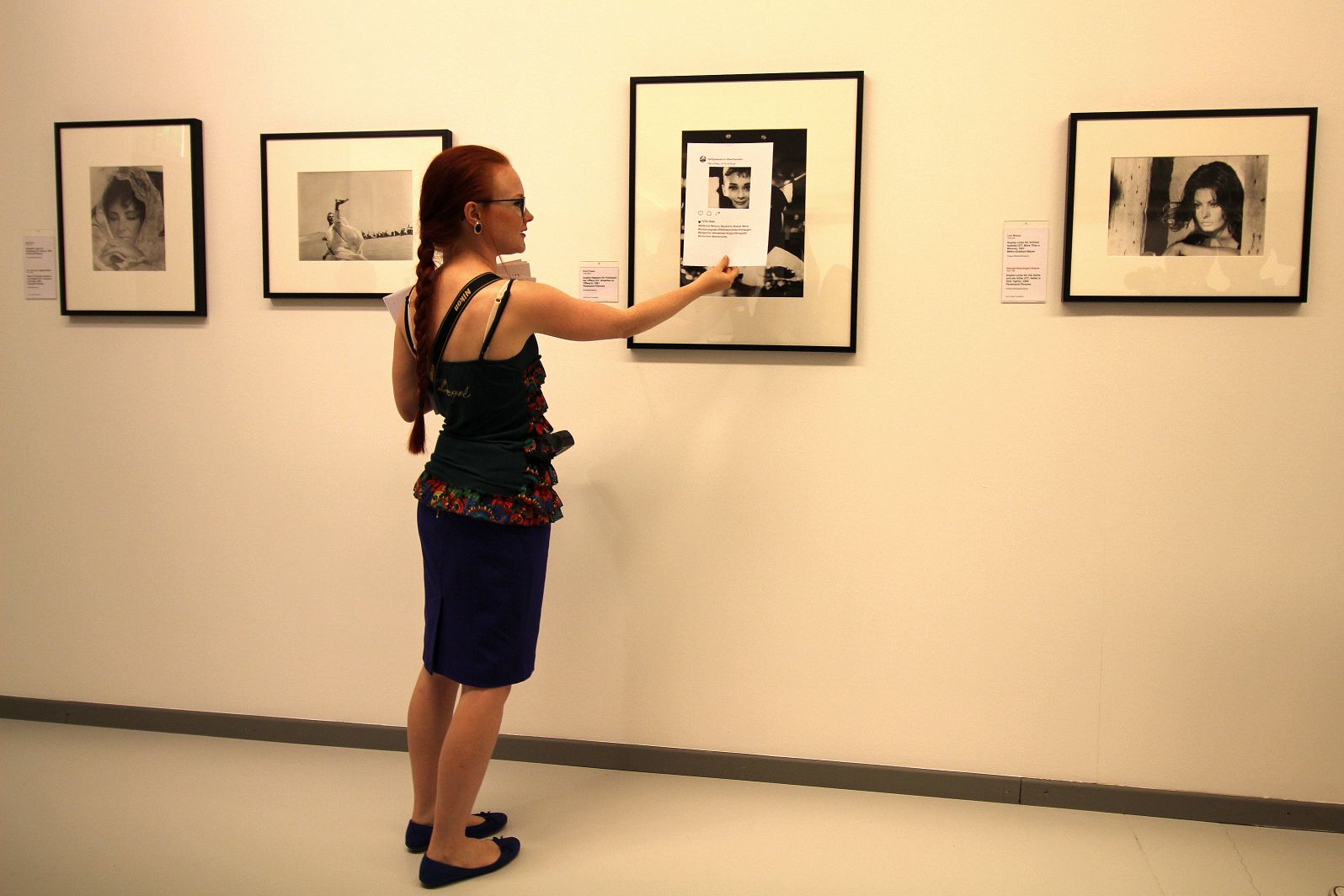 Ich muß allerdings eingestehen, daß ich mit weit weniger Wissen in die Ausstellung kam, als einige der (Mit-)Bloggerinnen und Blogger. Dabei gehörte ich zu den älteren … aber lassen wir das, die 1920er und 30er lagen auch vor meiner Zeit 😉 . Ein studierter Filmwissenschaftler und einer Reihe Filmfans waren unter den Gästen. Die Teinehmer der Bloggerrunde bekamen dieses Mal eine Art Bilderrahmen, wie man ihn von Instagram kennt. Die Likes und Hashtags waren schon da, was fehlte war das Bild.