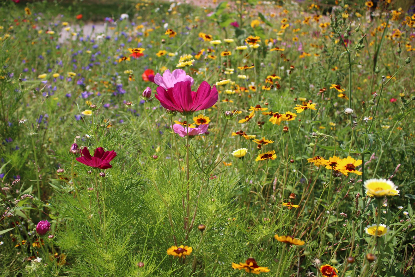 Vielleicht habt ihr dieses Jahr auch eine Blumenwiese ausgesäht, um dem Insektensterben entgegen zu wirken, daher fand ich es besonders schön, daß auch der Grugapark mehrere solcher Wiese ausgesäht hat. Natürlich sind das nicht die einzigen Blüten, aber eine der Wiesen befindet sich in der Nähe der Mustergärten und fordert die Besucher mittels Beschilderung auf, Fotos zu machen und zu einem Wettbewerb „Das schönste Blumenwiesenfoto“ einzusenden. Leider habe ich die Info dazu nicht fotografiert, also haltet mal Ausschau danach.