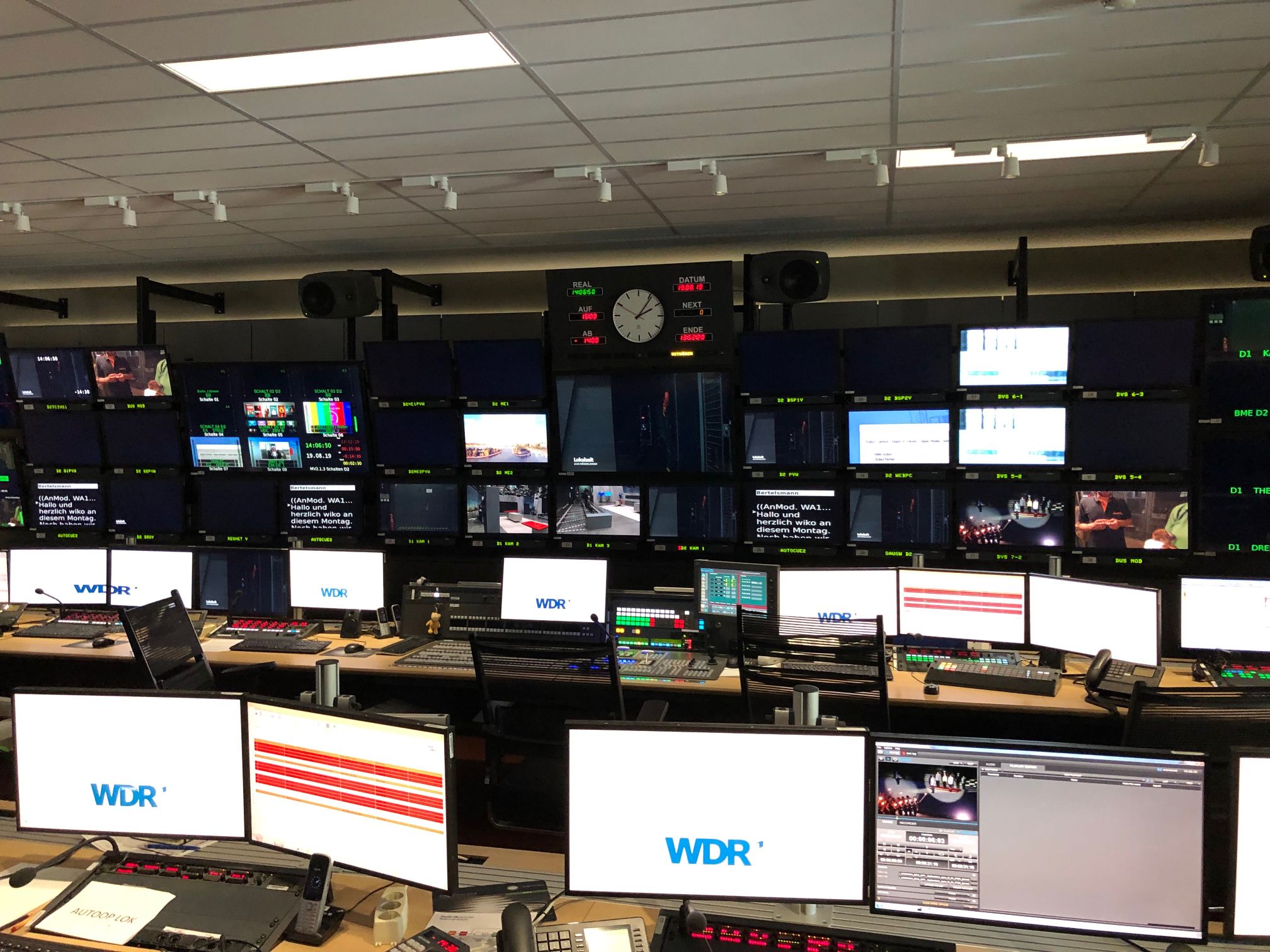 Dieses Mal durfte ich mit einer kleinen Gruppe in die Regie und in die Redaktionsräume, den Mitarbeiterinnen und Mitarbeitern über die Schulter gucken, die intern für die Nachrichten arbeiten oder extern für euch, indem sie z.B. den Instagramkanal der Aktuellen Stunde bespielen. Aber auch ein Blick ins Studio gehörte dazu. Mal hinter die Projektionswand gucken, mal selber am Nachrichtenpult stehen.