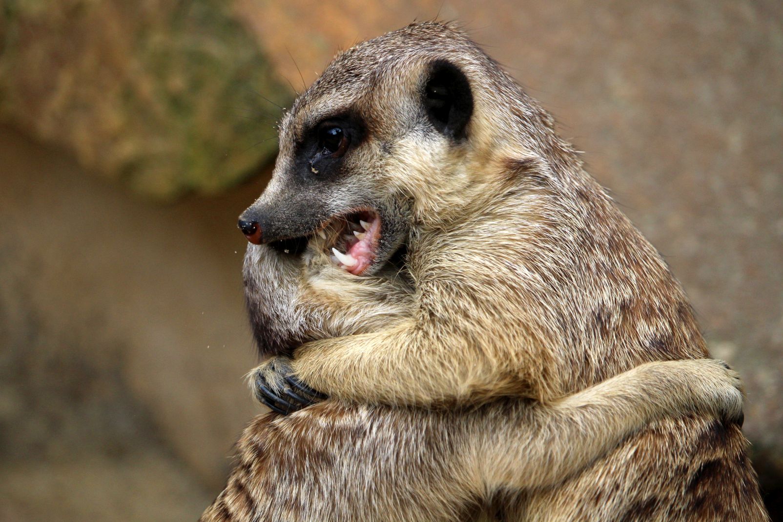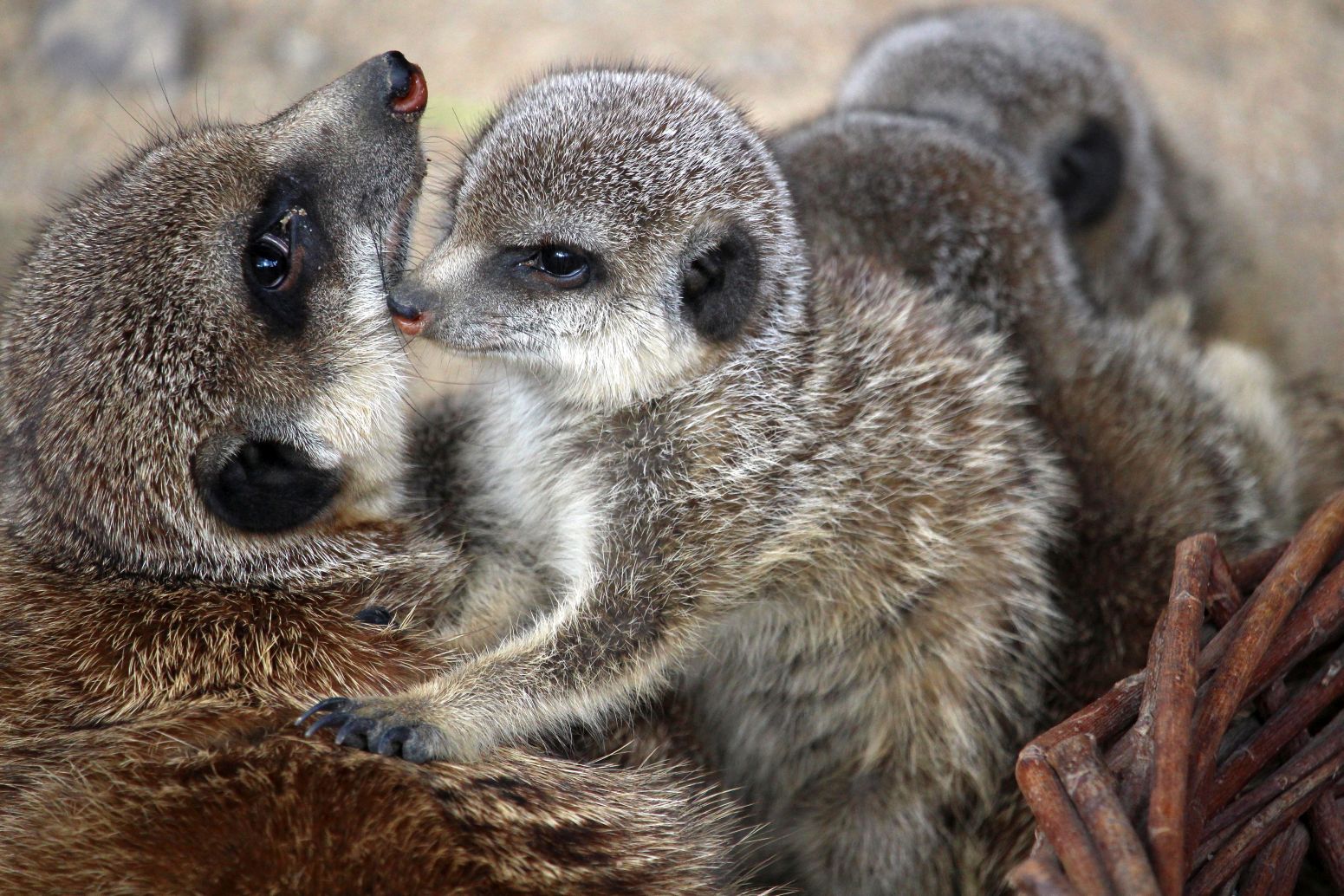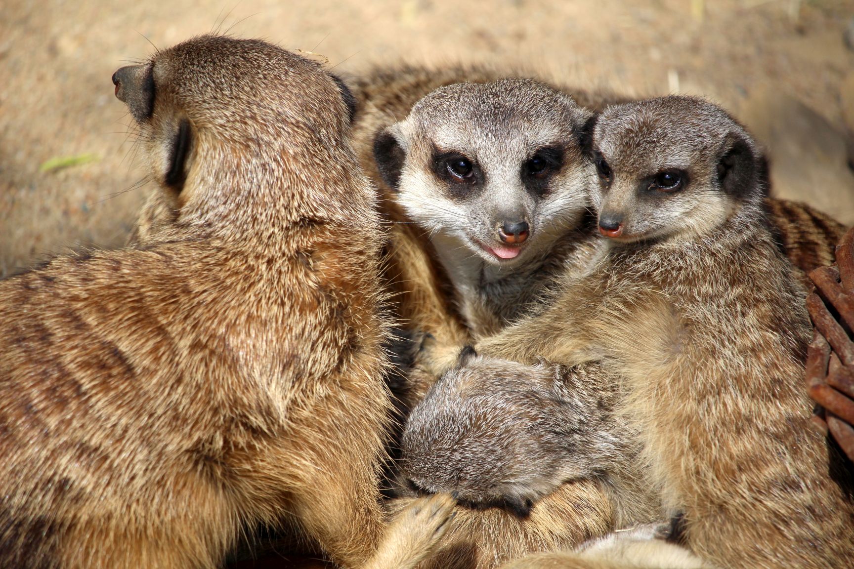 Auf dem Rückweg besuche ich im Sommer dann gerne das Regenwald- und das Schmetterlingshaus und lande schließlich bei den Erdmännchen. Das sind die neuen heimlichen Stars des Zoos. Zwar ist das erste Männchen aus unerfindlichen Gründen letztes Jahr verschwunden, mittlerweile hat die kleine Familie, mit neuem Männchen, aber wieder Nachwuchs. Hier stehe ich auch schon mal eine 1/2 Stunde und länger.