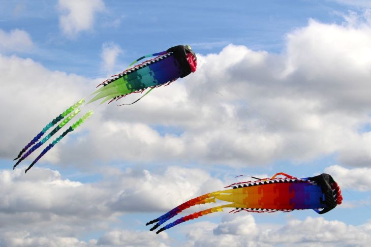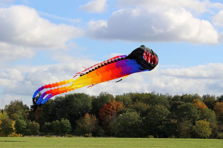 Und was gehört zum Herbst, wie Blätter im Wind? Genau die Drachen am Himmel, mal kleiner wie auf der Halde Norddeutschland, hier stehen die Drachen auf Grund der Höhe der Halde gut im Wind, und mal größer, wie auf der Wiese gegenüber von Haus Ripshorst. So stand ich wieder mal da und schaute für längere Zeit in den herbstlichen Spätsommerhimmel.
