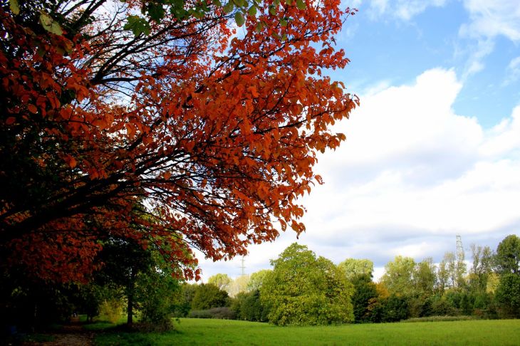 Wo anders kann man sonst noch bunte Blätter finden, wenn nicht im Gehölzgarten des Hauses Ripshorst in Oberhausen. Wenn man das trubelige Centro auf der rechten Seite links liegen läßt (Moment geht das überhaupt), kann man nur wenige 100 Meter entfernt im Gehölzgarten die Gedanken schweifen lassen. Viele bunte Blätter säumen den Weg, in diesem Jahr gefühlt schon sehr viele für Mitte Oktober.