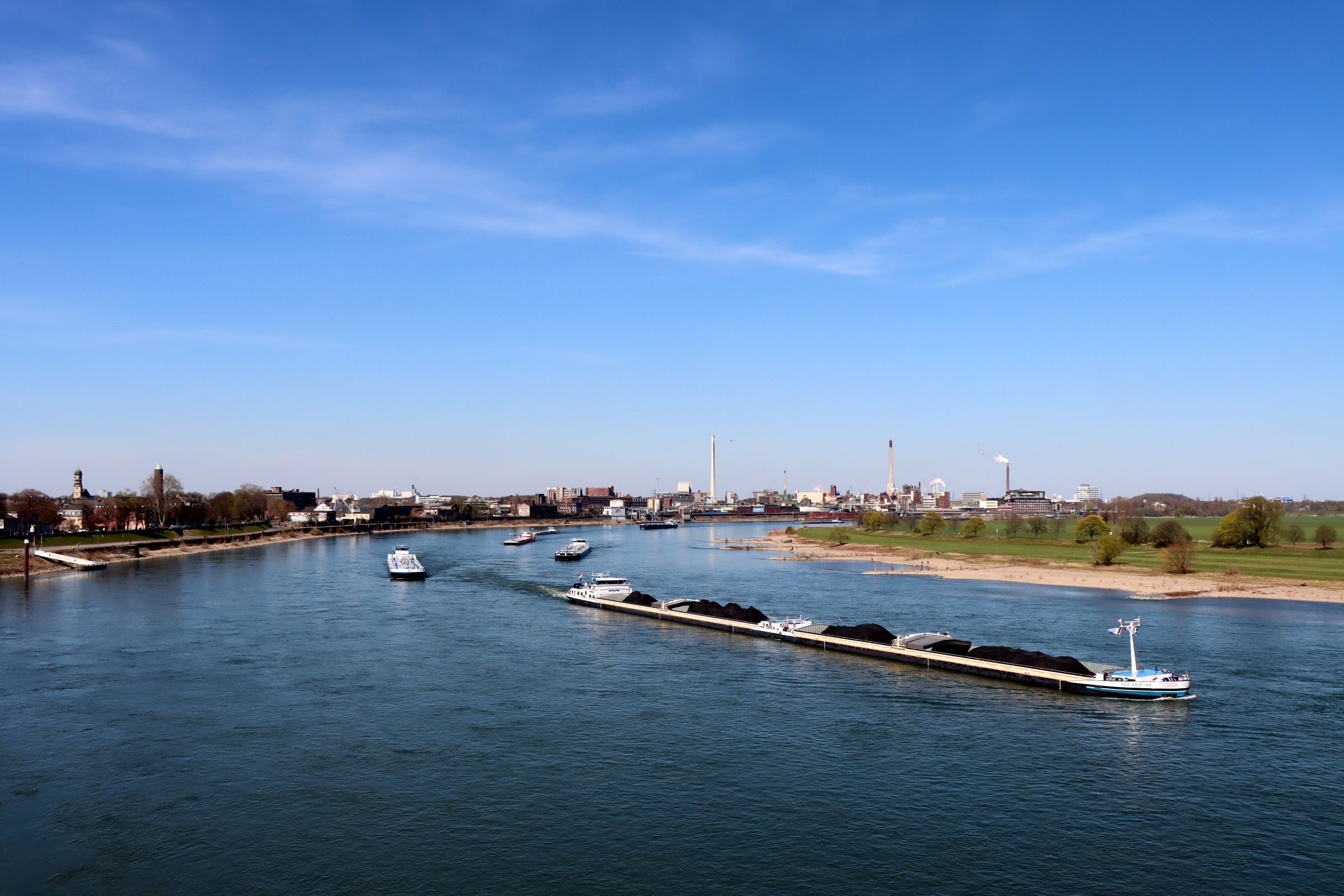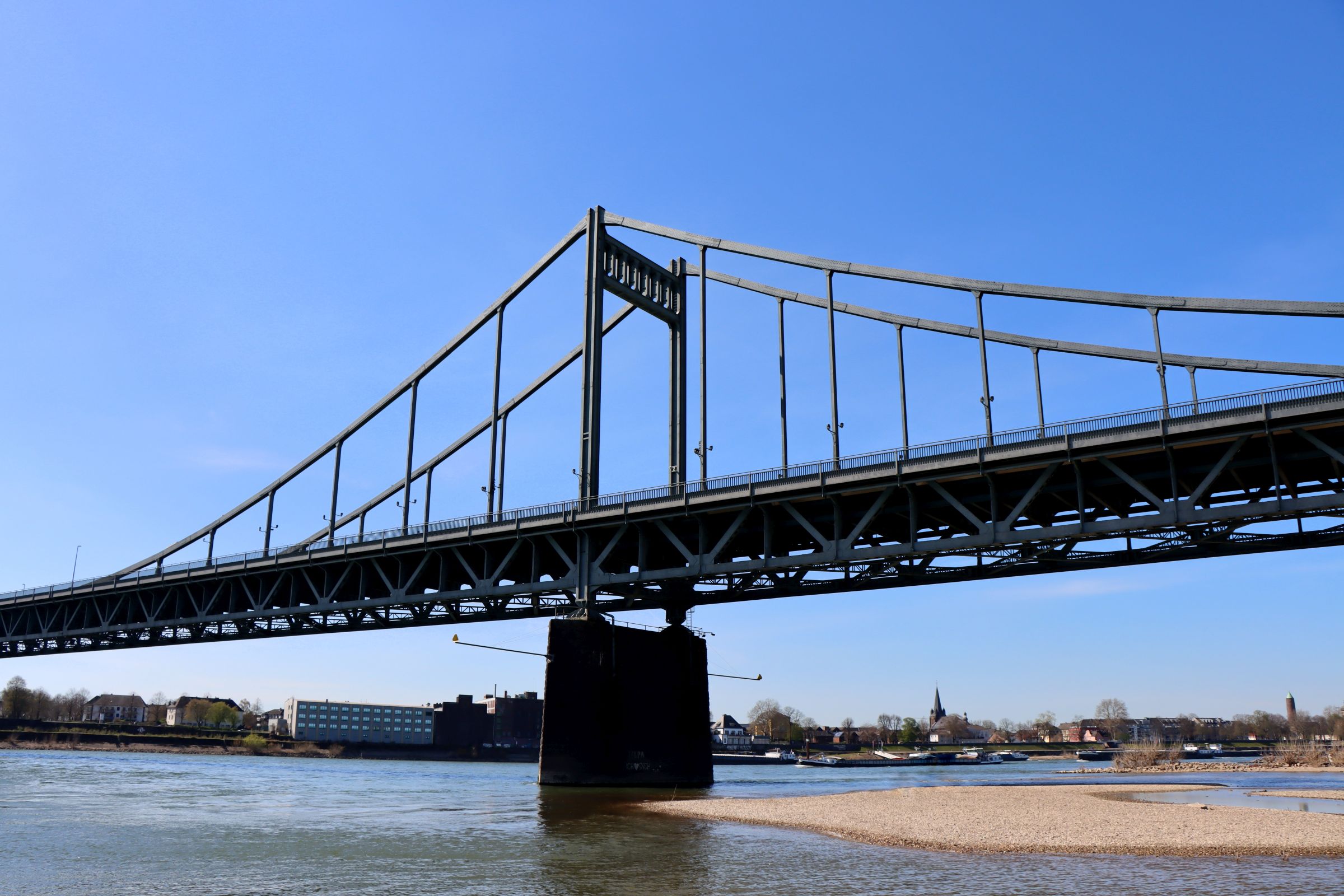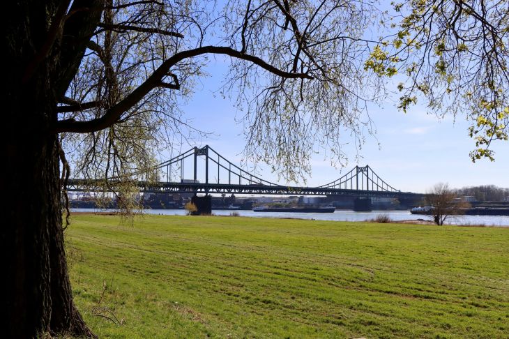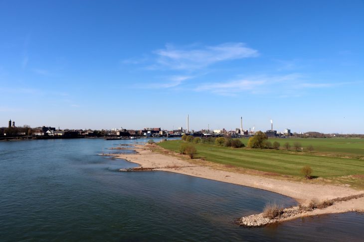 Immer wenn ich am Uerdinger Rheinufer stehe, fällt mein Blick auf das abgeflachte Ufer auf der anderen Seite. Während es auf Krefelder Seite aus Gründen des Hochwasserschutzes hoch liegt, hat der Rhein auf der anderen Seite Platz sich auszubreiten. Da man den Rhein dort aber nur über einen kleinen, unwegsamen Parkplatz erreichen kann, lasse ich heute mal das Auto auf der Uerdinger Seite stehen und überquere die Rheinbrücke per pedes.