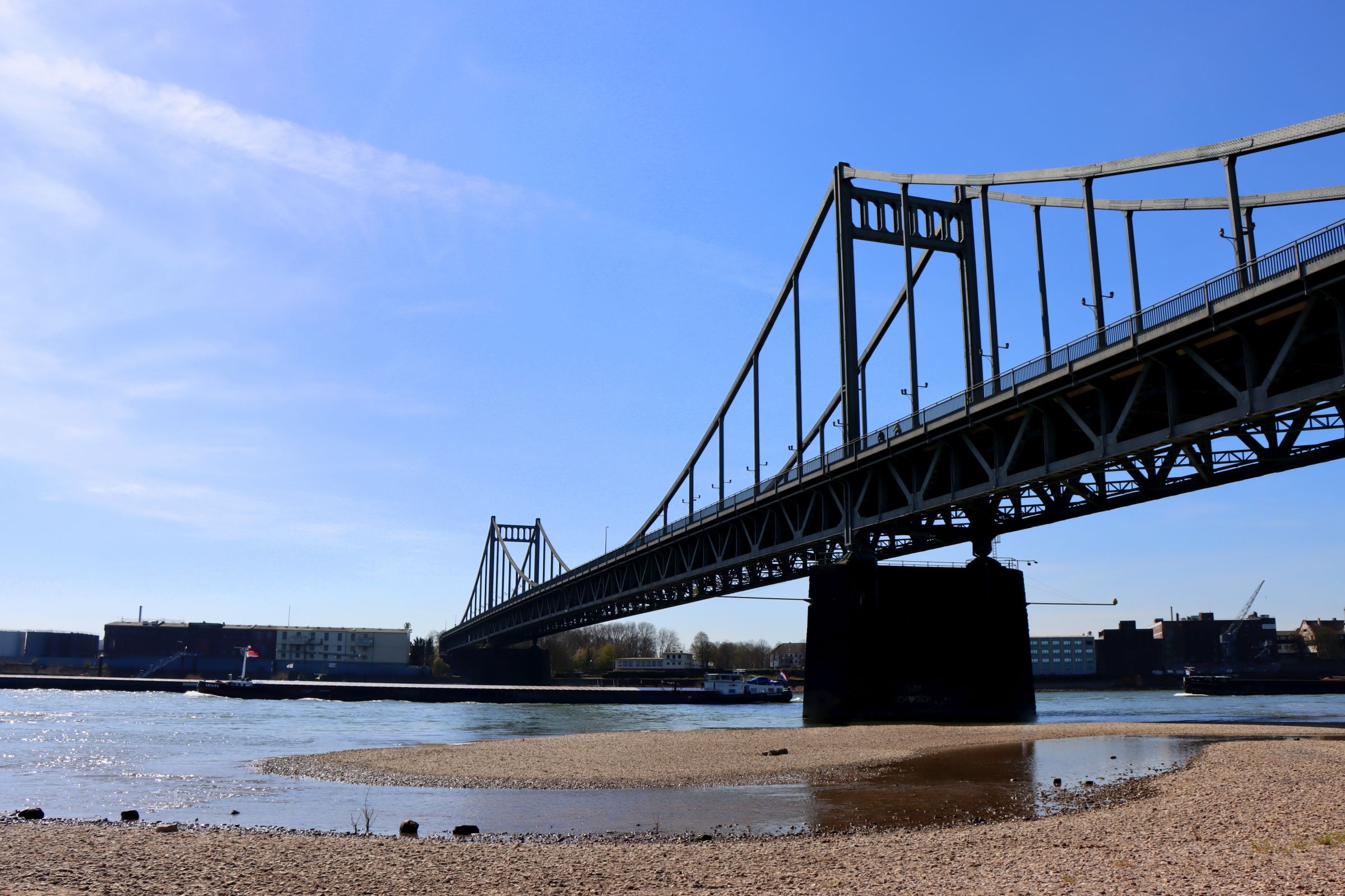 Die Brücke bei Rheinkilometer 764 ist als Anbindung an die Bundesstraße 288 die direkte Verbindung zwischen Krefeld und Essen (via A52 und Ruhrtalbrücke) und damit stark vom LKW Verkehr belastet. Nun bin ich die 860 Meter also wie gesagt gelaufen und habe mich der fotografisch interessanten Brücke von oben wie von unten genähert. Die Ergebnisse seht ihr in diesem „Kurz und Knapp“. Noch ein paar weitere Bilder gibt’s bei Flickr und GooglePhotos.