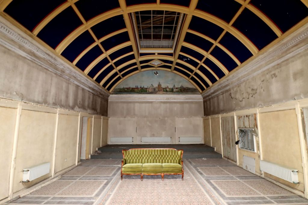 In der ersten Führung nach der Corona Pause (höchstens 6 Personen) durfte ich dabei sein und sehen was sich mittlerweile getan hat. Rund um das ehemalige Freibad wurde die Natur zurückgeschnitten, neue Gehwegplatten wurden verlegt und der Zaun wurde gesetzt. Erinnert ihr euch an das grüne Sofa im blauen Salon? Eine weitere Türe hat sich geöffnet und neue überraschende Elemente und Kachelmuster kamen zum Vorschein.