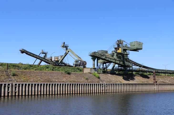 Auch auf der Kohleinsel wird es ruhiger. Da es keine heimische Steinkohle mehr gibt, wird auch kaum noch Steinkohle verladen. Auf der Kohleinsel ist sozusagen Ausverkauf. Die Kohlenberge schwinden und die Band- und Transportanlagen werden über kurz oder lang verkauft, Platz für noch mehr Container, denn die sind bekanntlich auf allen Weltmeeren als Transportboxen zu Hause. Einige davon bekommt man auch bei der Rundfahrt zu sehen.